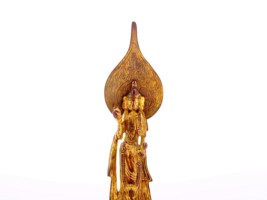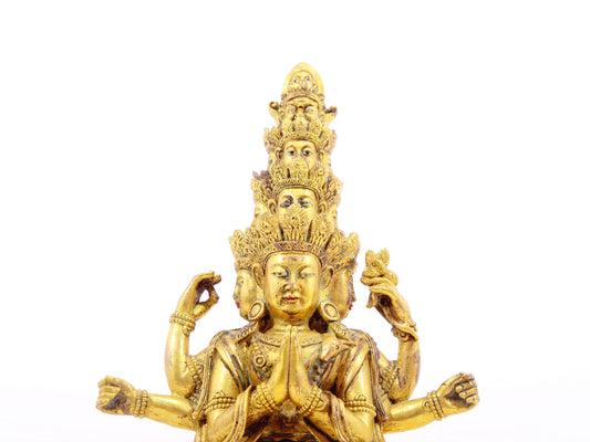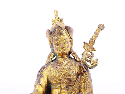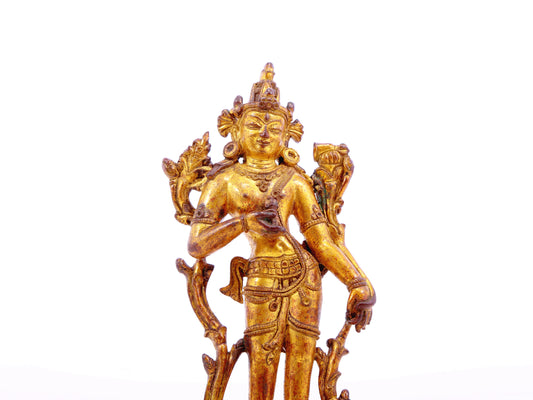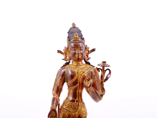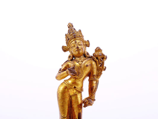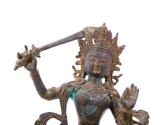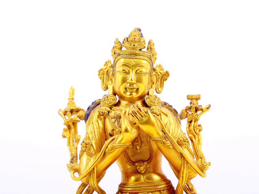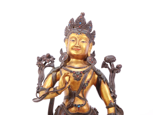 A serene gilt bronze statue of Manjushri Bodhisattva