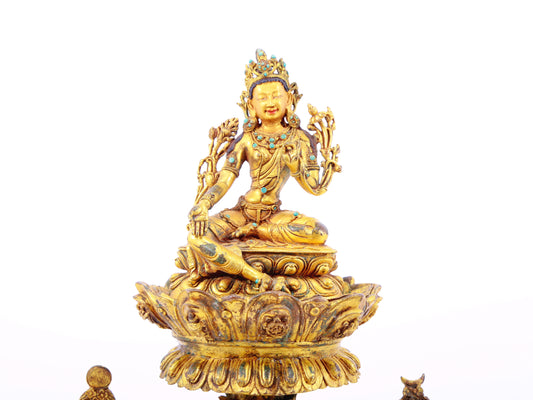 A serene gilt bronze statue of Tara inlaid with turquoise green