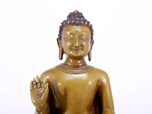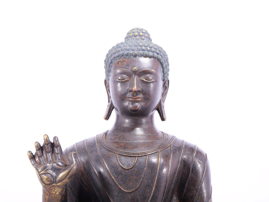 A solemn alloy bronze statue of Gautama Buddha
