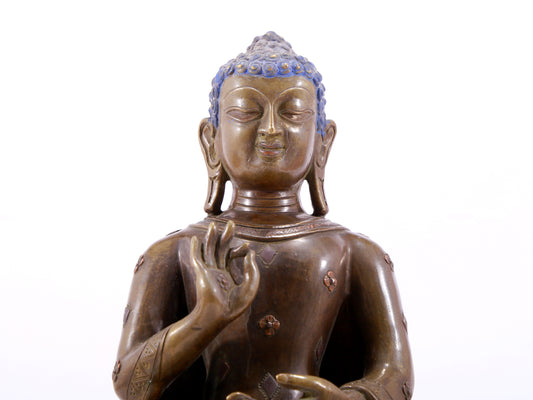 A solemn alloy copper inlaid silver statue of Gautama Buddha
