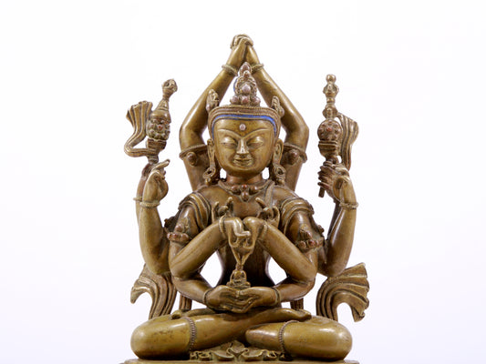 A solemn alloy copper inlaid silver eight-armed Guanyin statue