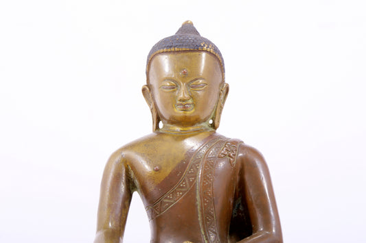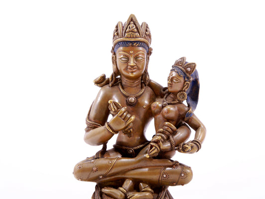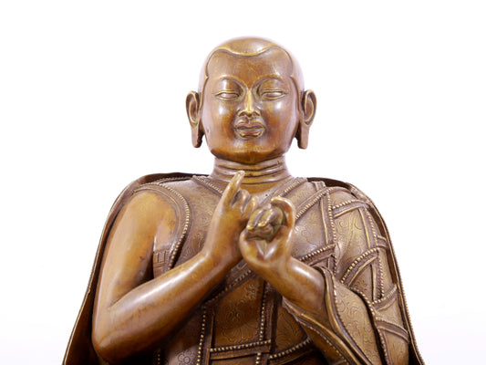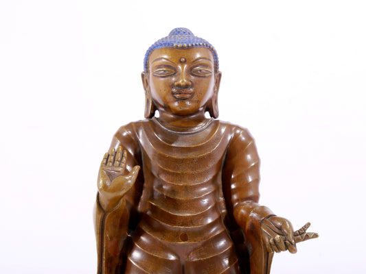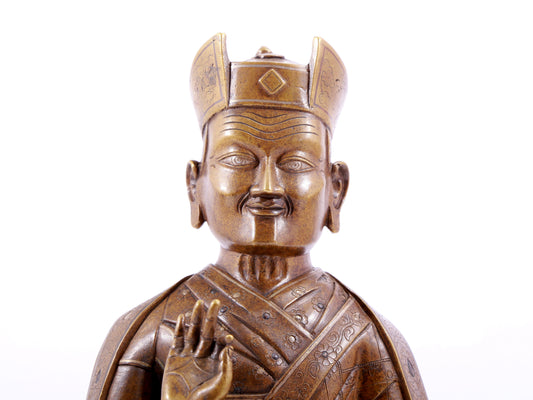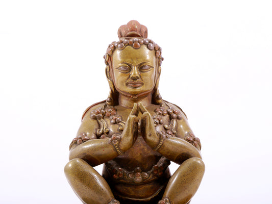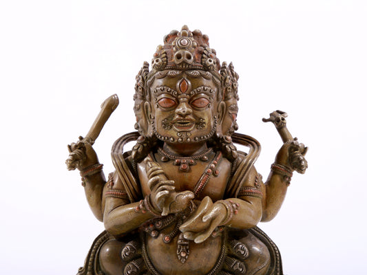 A solemn alloy copper inlaid silver statue of the God of Wealth