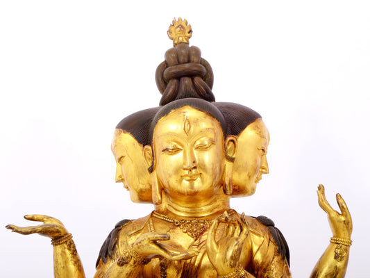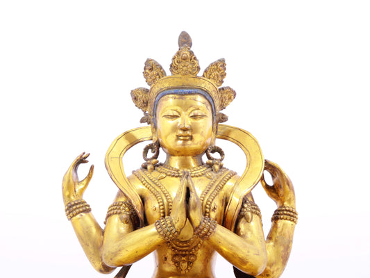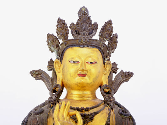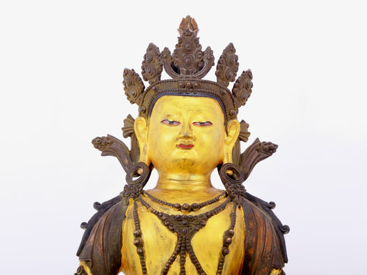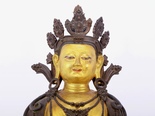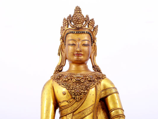 A solemn gilt bronze statue of Bodhisattva