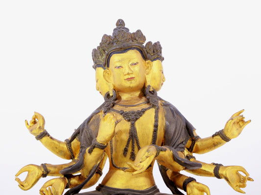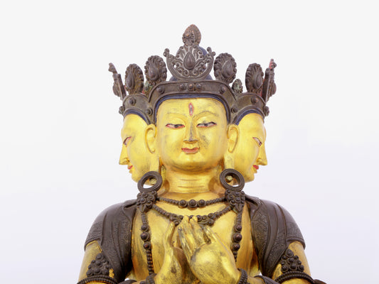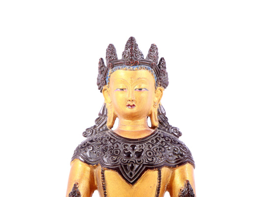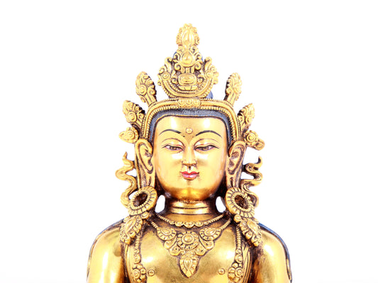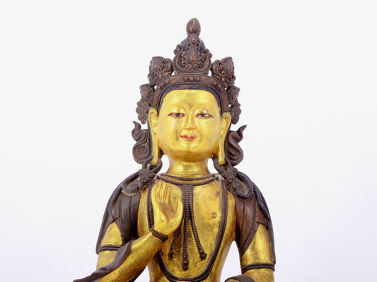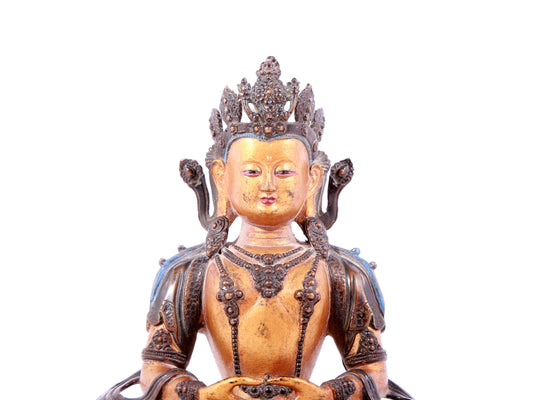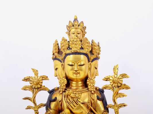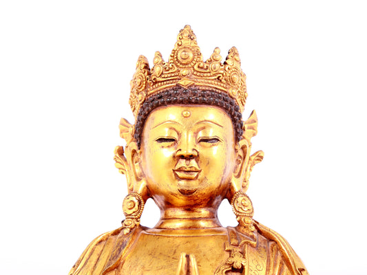 A solemn gilt bronze statue of Bodhisattva