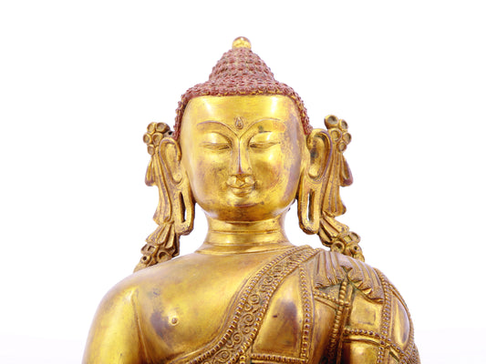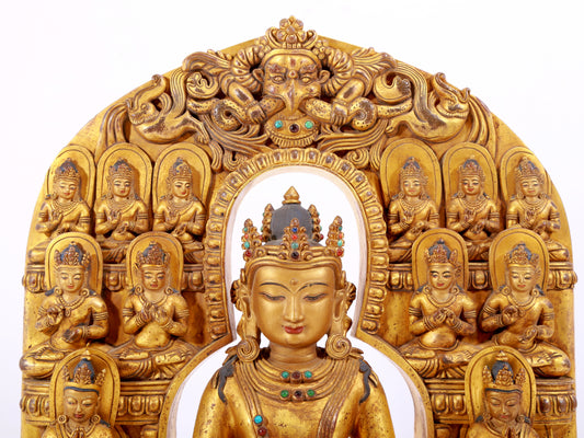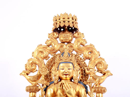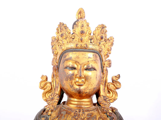 A solemn gilt bronze statue of Bodhisattva inlaid with hundreds of treasures