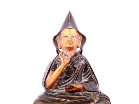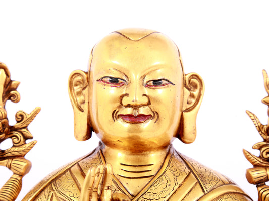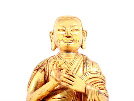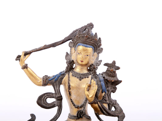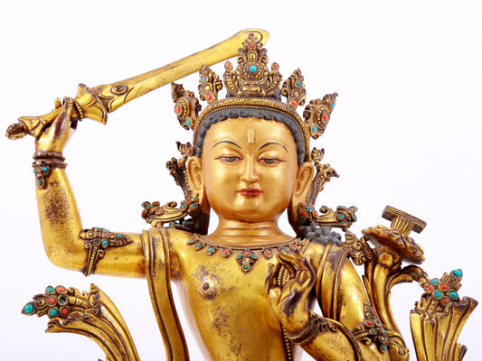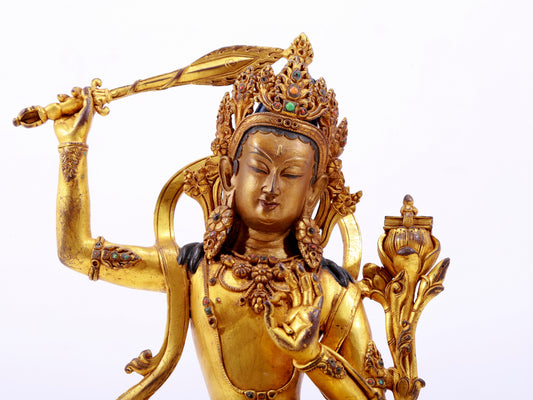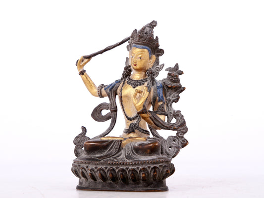 A solemn gilt bronze statue of Manjushri Bodhisattva
