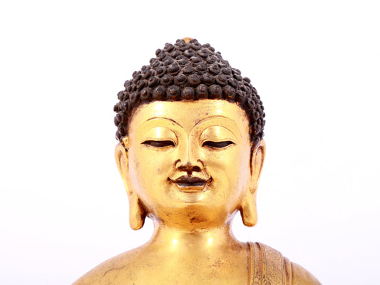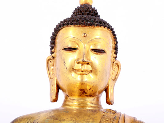 A solemn gilt bronze statue of Mystical Sound Buddha