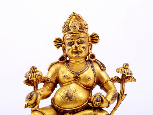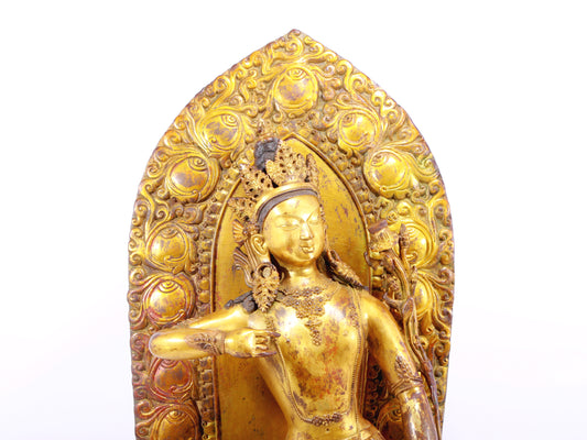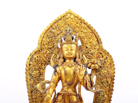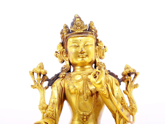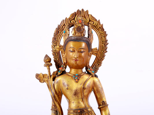 A solemn gilt bronze statue of Tara inlaid with hundreds of treasures