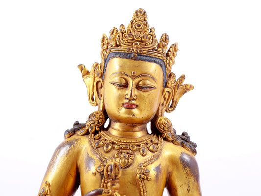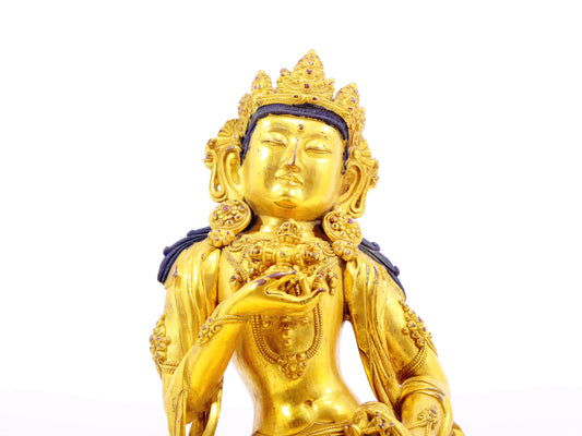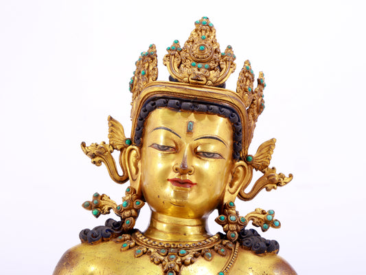 A solemn gilt bronze statue of Vajrasattva inlaid with turquoise