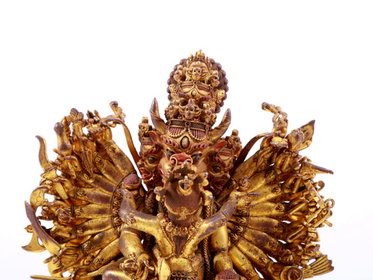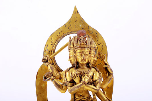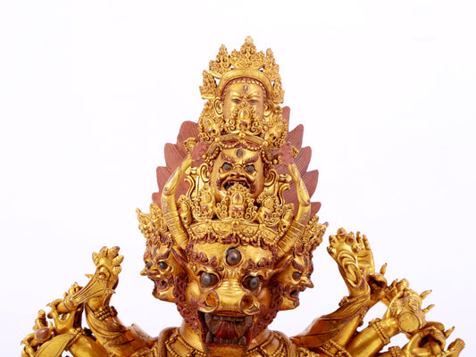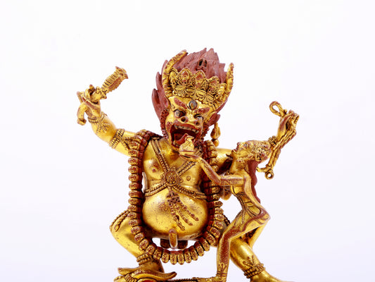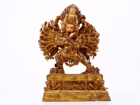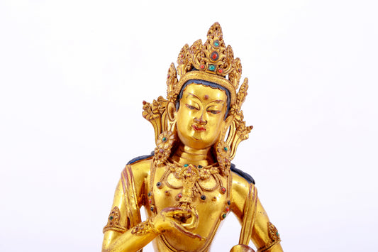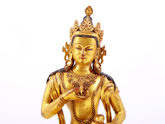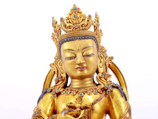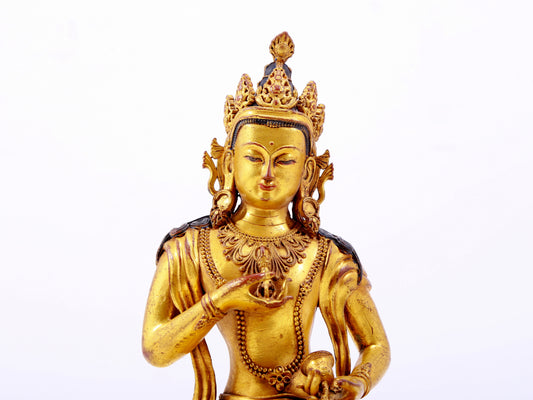 A solemn gilt bronze statue of Vajrasattva inlaid with hundreds of treasures