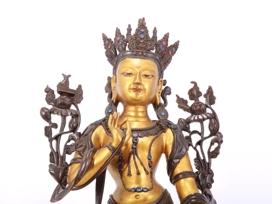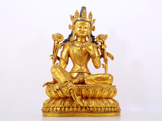 A stunning gilt bronze statue of Manjushri Bodhisattva