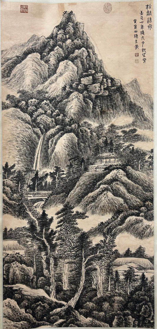 An Exquisite Chinese Ink Painting Hanging Scroll By Wang Meng