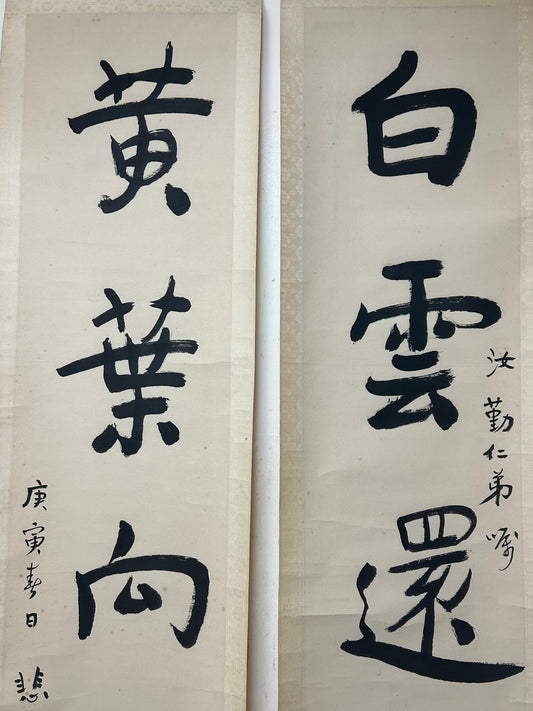 An Exquisite Chinese Ink Calligraphy Couplet By Xu Beihong