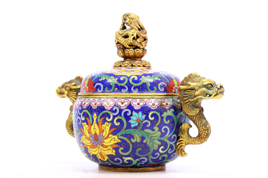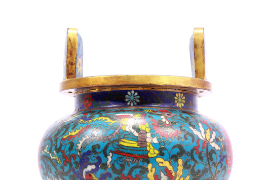 A cloisonné 'Phoenix and Flower' amphorae with three legs