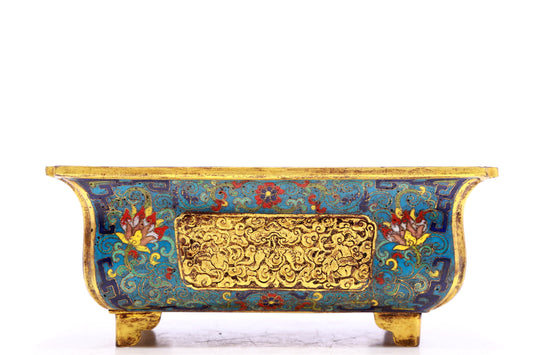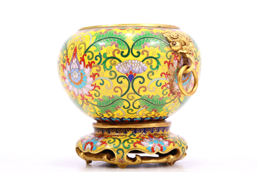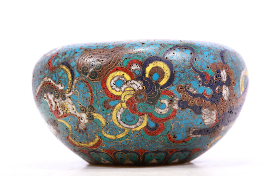 A cloisonné bowl with lotus pattern and auspicious animal ears