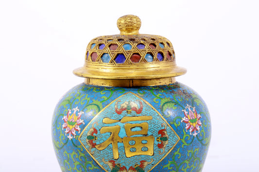 An exquisite cloisonné tangled lotus pattern double-eared censer with lid通常価格 $2,800.00 USD通常価格単価 あたり-
