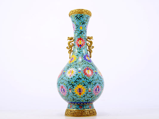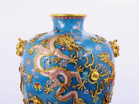 A cloisonné vase with auspicious clouds and dragon pattern