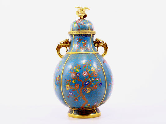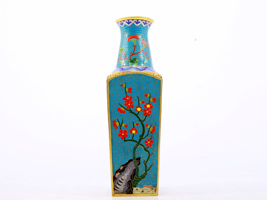 A pair of cloisonne flower and bird pattern amphora