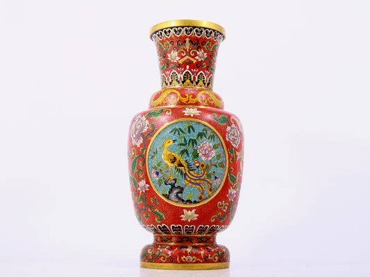 A pair of cloisonné and phoenix pattern vases