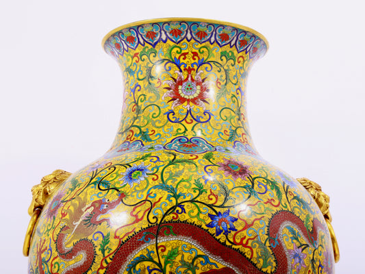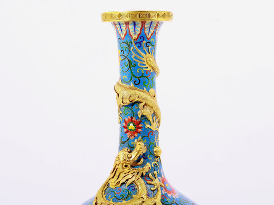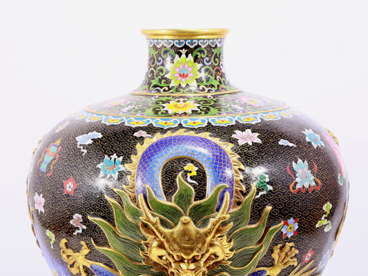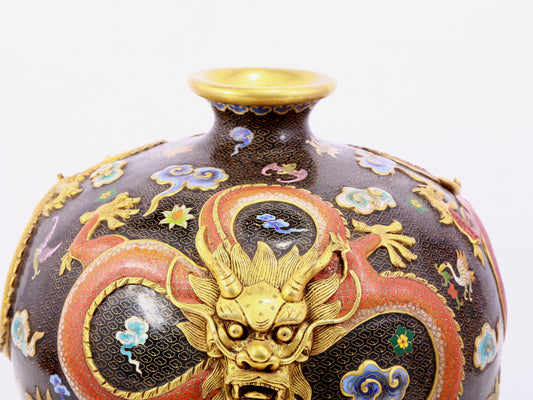 A cloisonné vase with auspicious clouds and dragon pattern