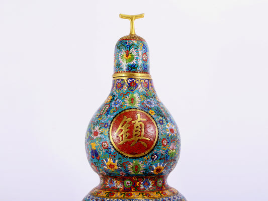 A cloisonné gourd-shaped vase with lotus pattern