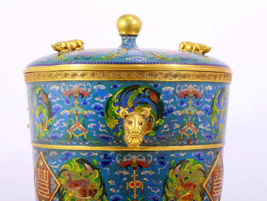 A cloisonné lion pattern amphora with lid