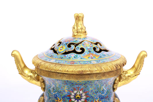A Fabulous Cloisonne 'Scrolling Lotus' Censer And Cover