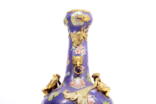 A Fabulous Cloisonne 'Flower' Chi-Dragon-Handled Vase
