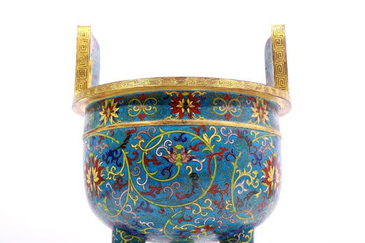 A Superb Cloisonne 'Scrolling Lotus' Tripod Censer