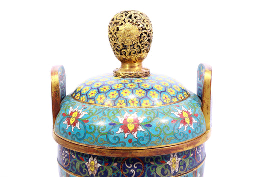A Gorgeous Cloisonne 'Scrolling Lotus& Taotie' Tripod Censer And Cover