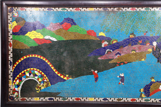 A Superb Cloisonne 'Landscape& Figure' Hanging Screen