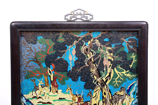 Precious Cloisonne 'Pine, Deer, Landscape' Hanging Screen