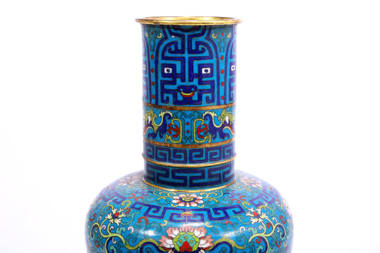 A cloisonné vase with 'Twinkle lotus and animal face' pattern