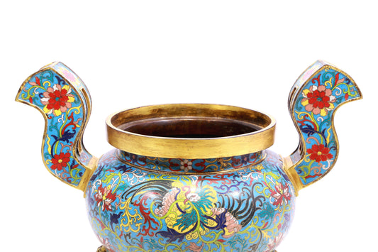 A Gorgeous Cloisonne 'Phoenix& Flower' Tripod Censer