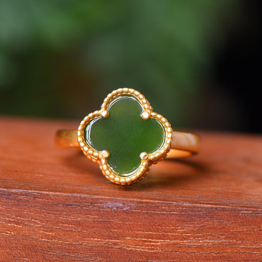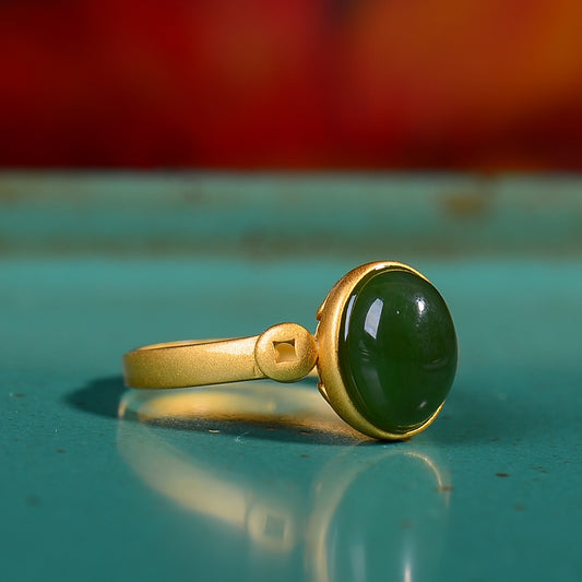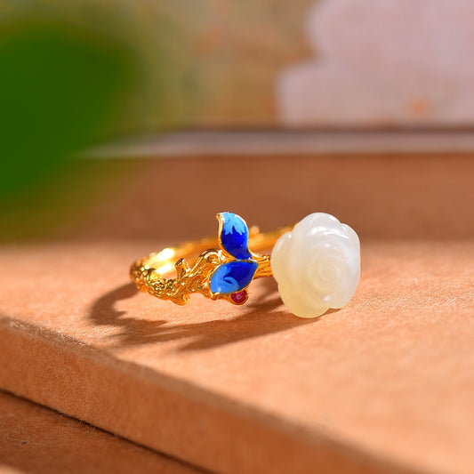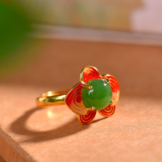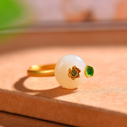 Gilt silver inlaid Hetian jade safety buckle enamel lotus ring