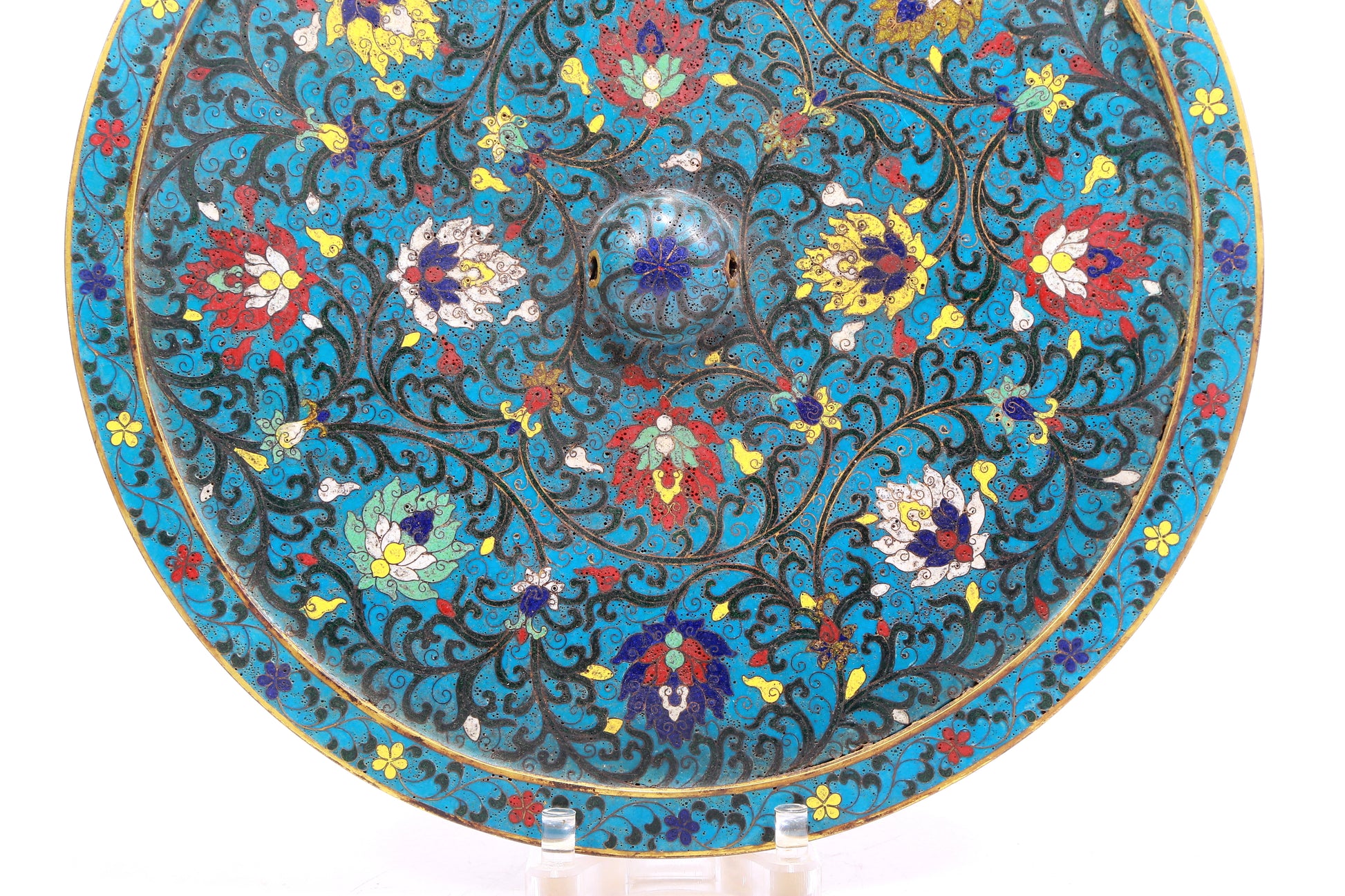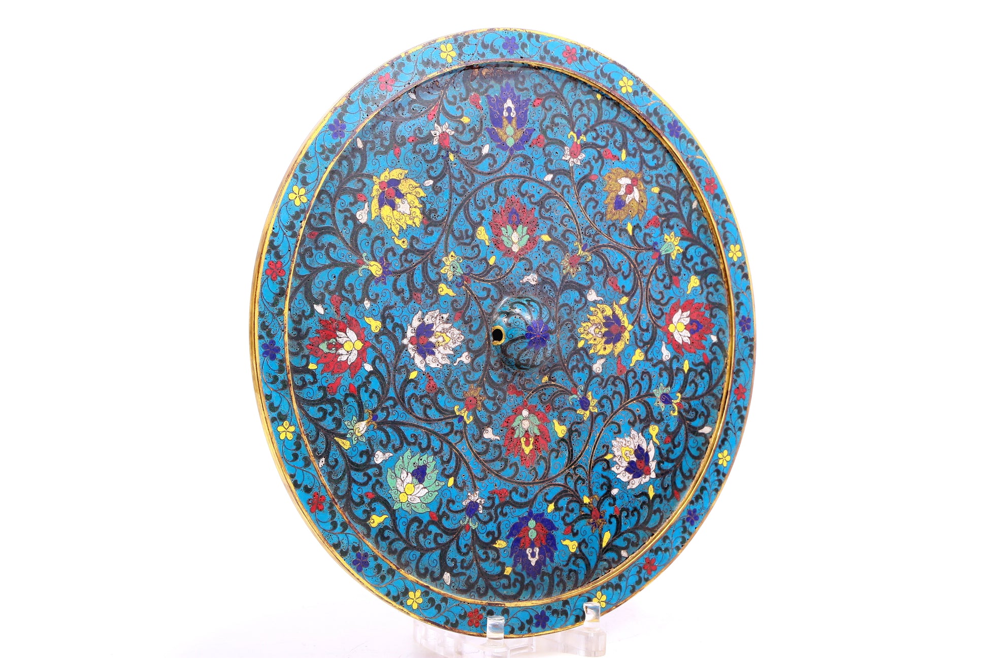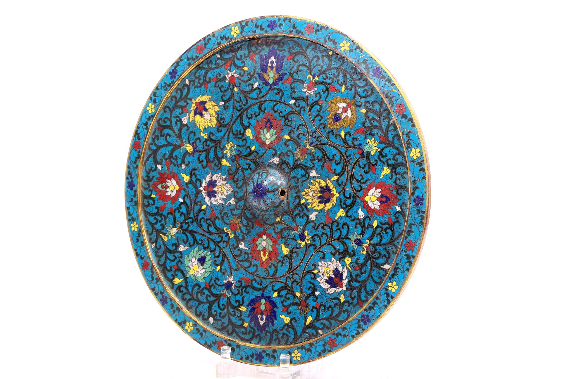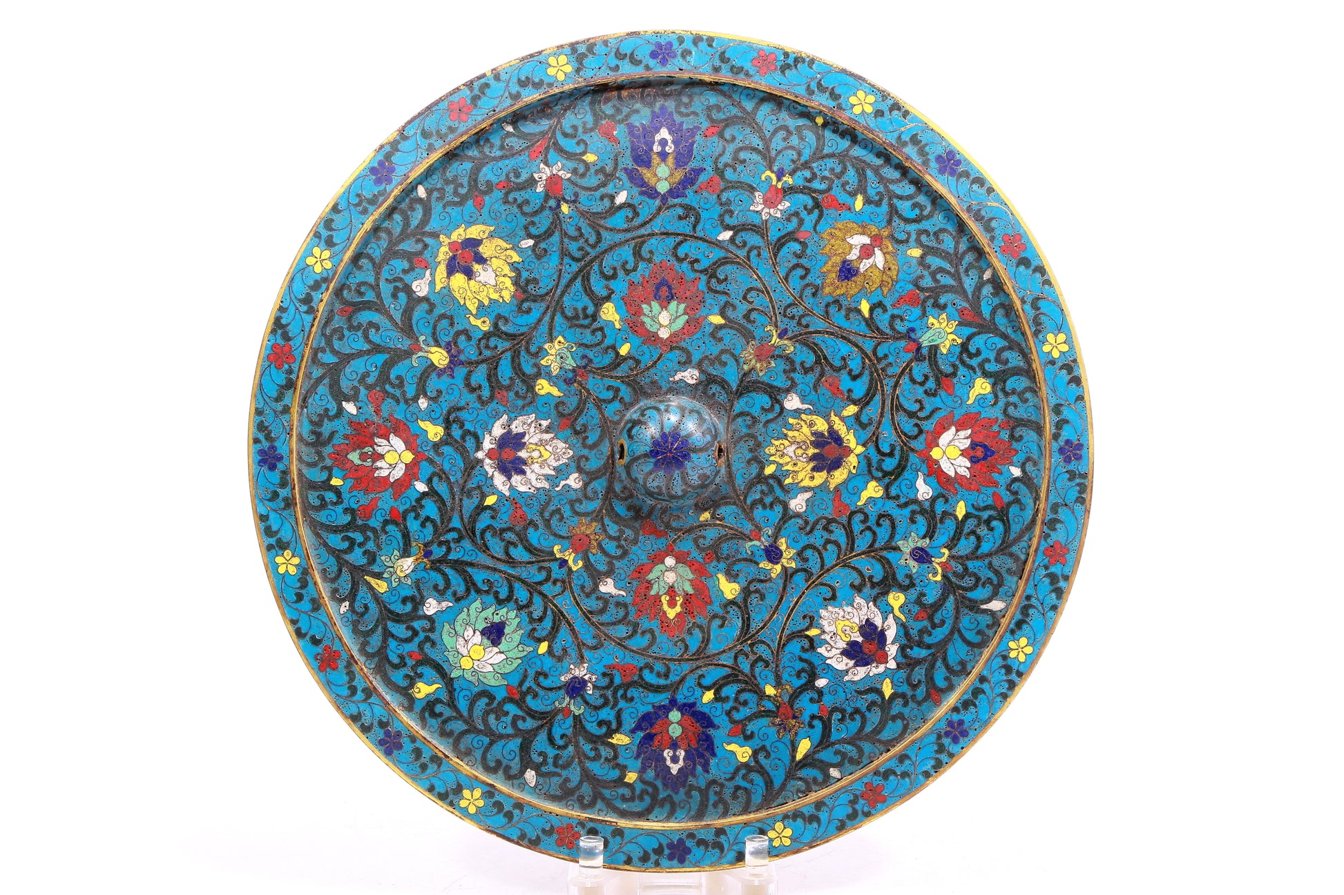 A Gorgeous Circular Cloisonne 'Scrolling Lotus' Mirror