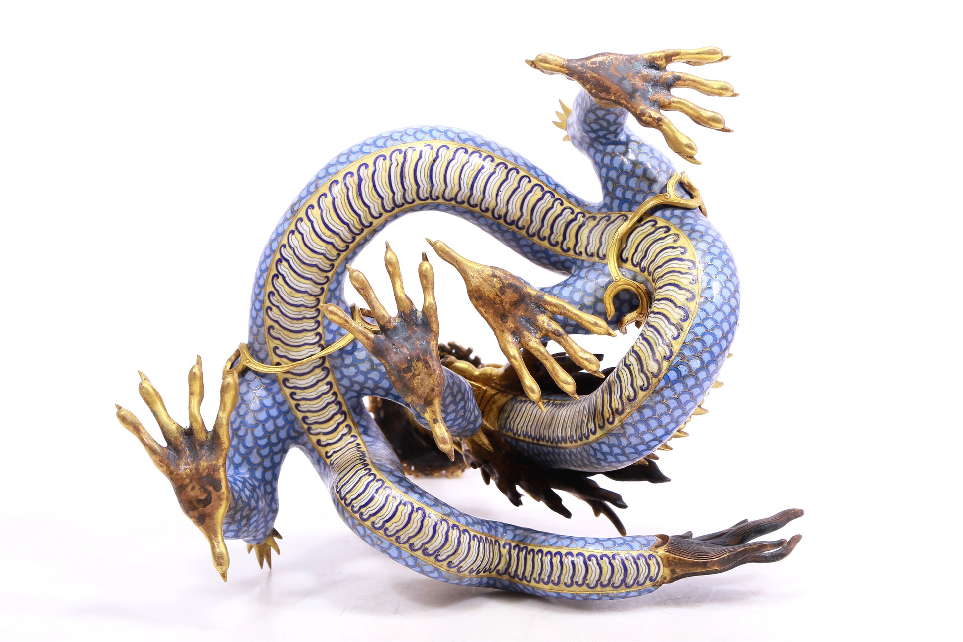 A Gorgeous Cloisonne Dragon-Form 'Auspicious Cloud' Censer