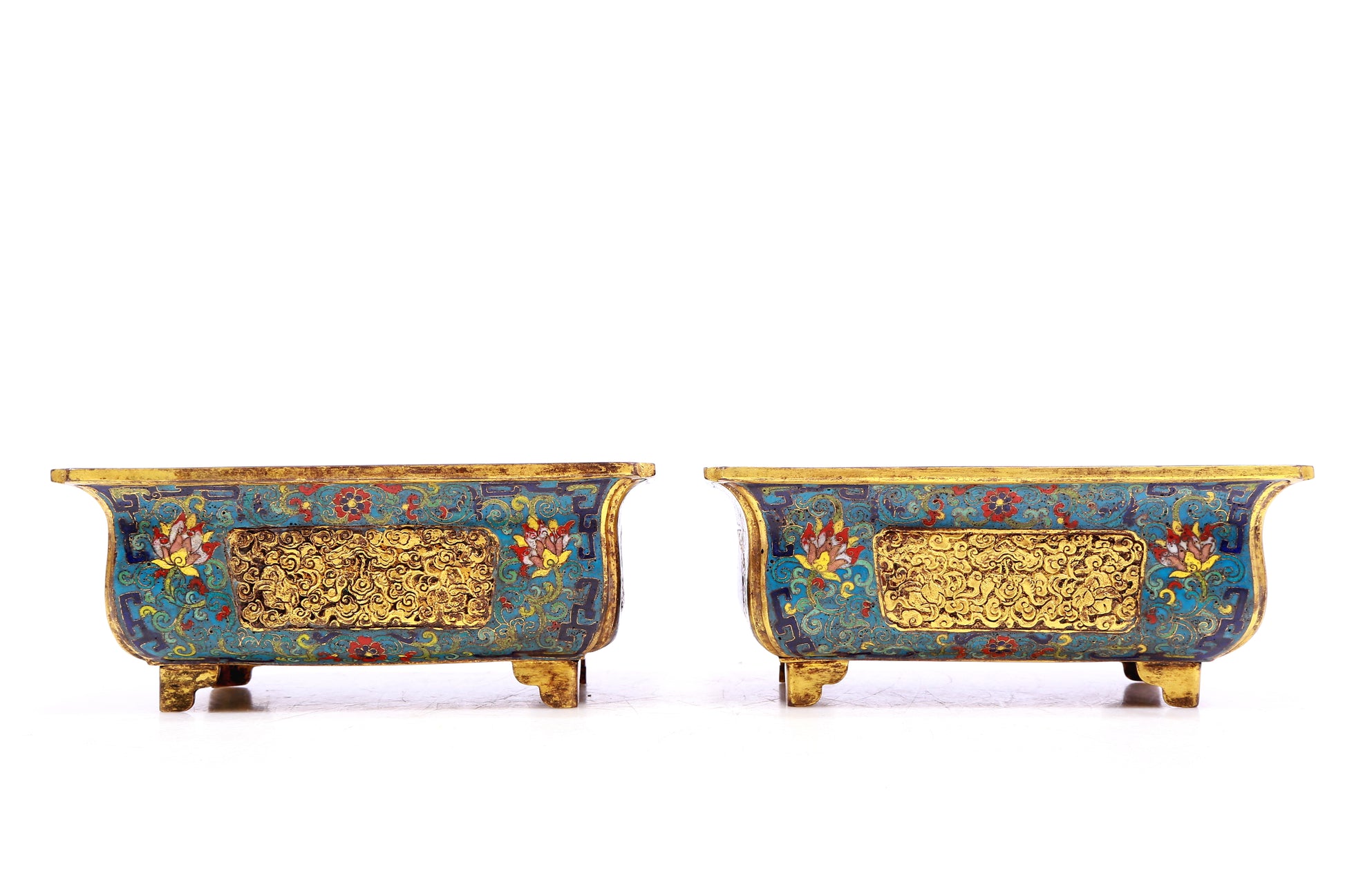 A Gorgeous Pair Of Cloisonne 'Scrolling Lotus' Jardinieres