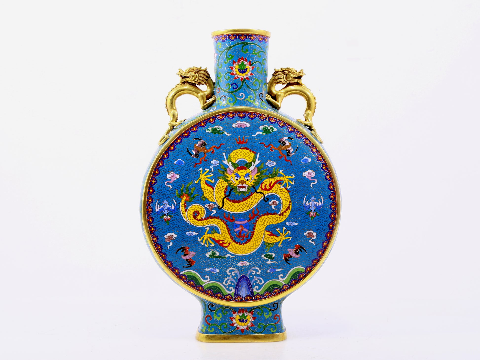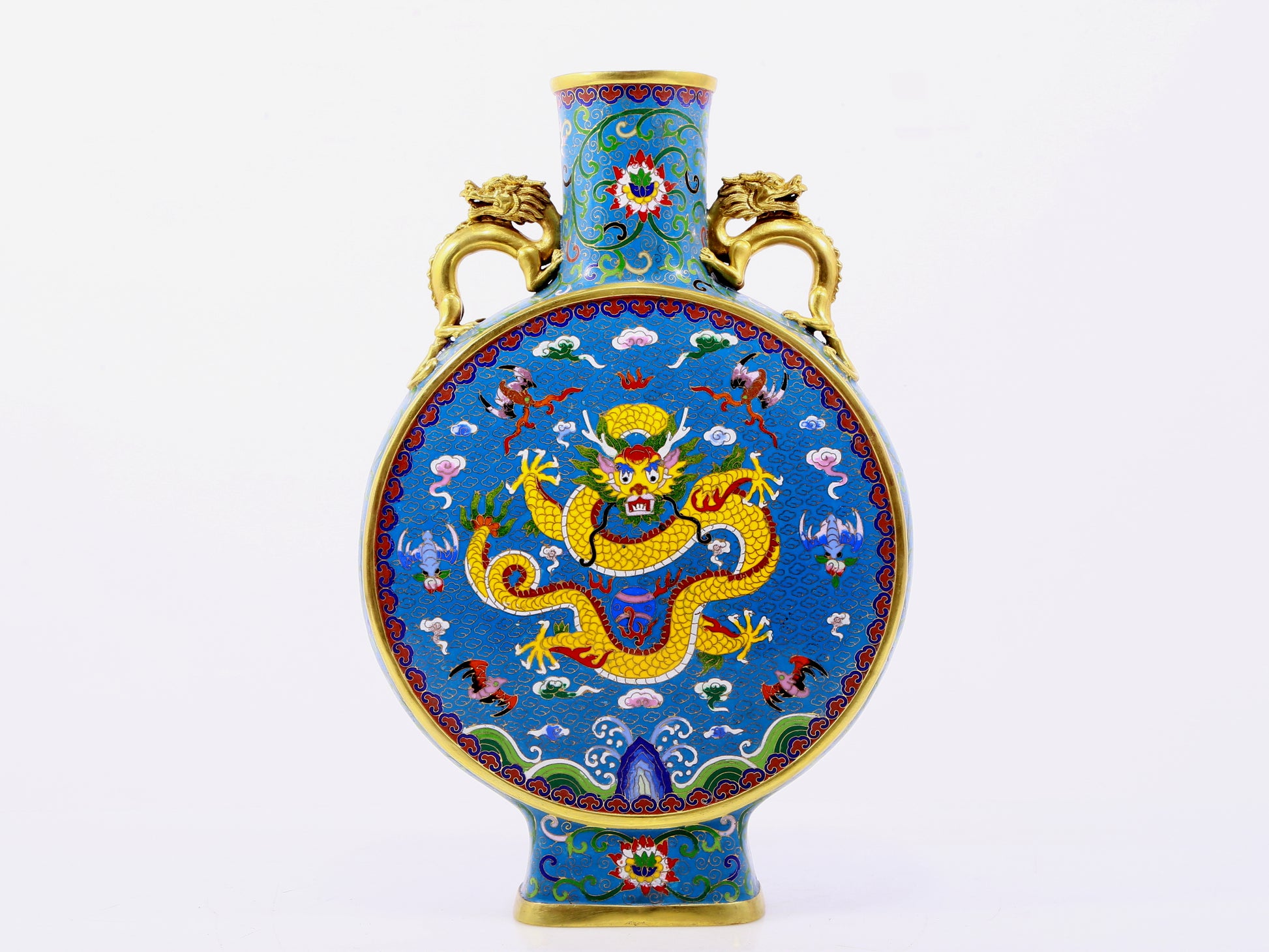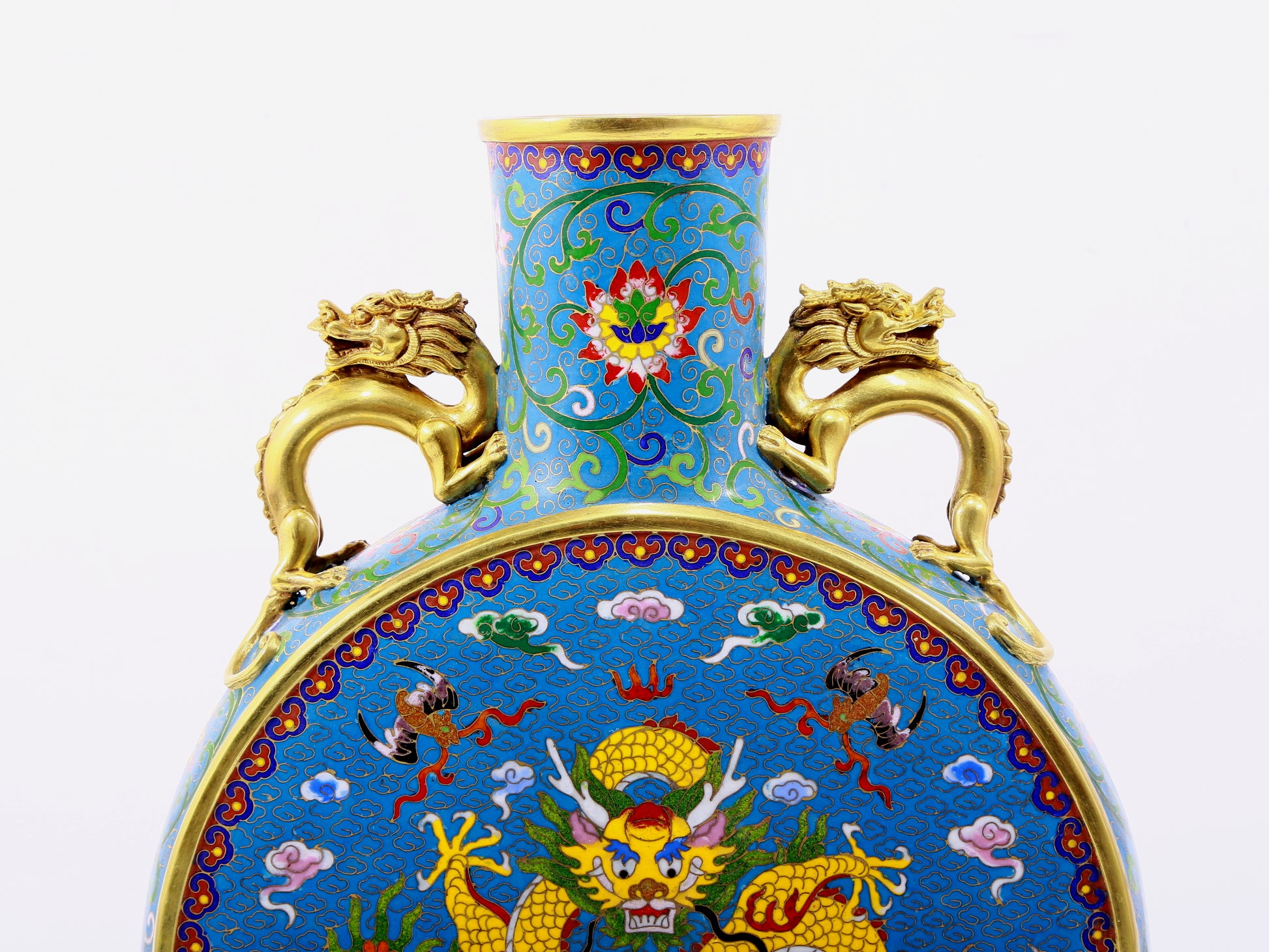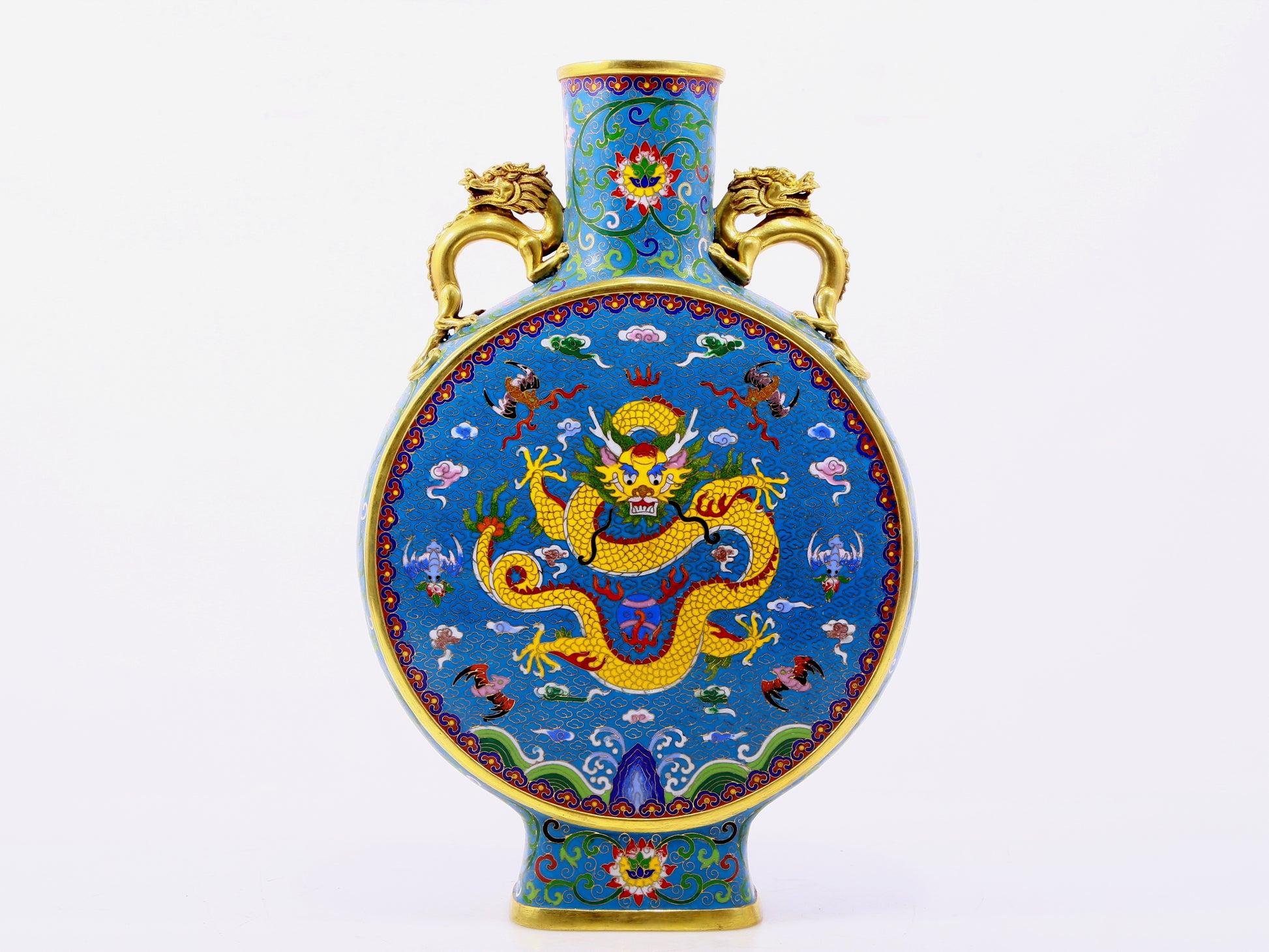 A pair of cloisonné auspicious clouds and dragon pattern amphora