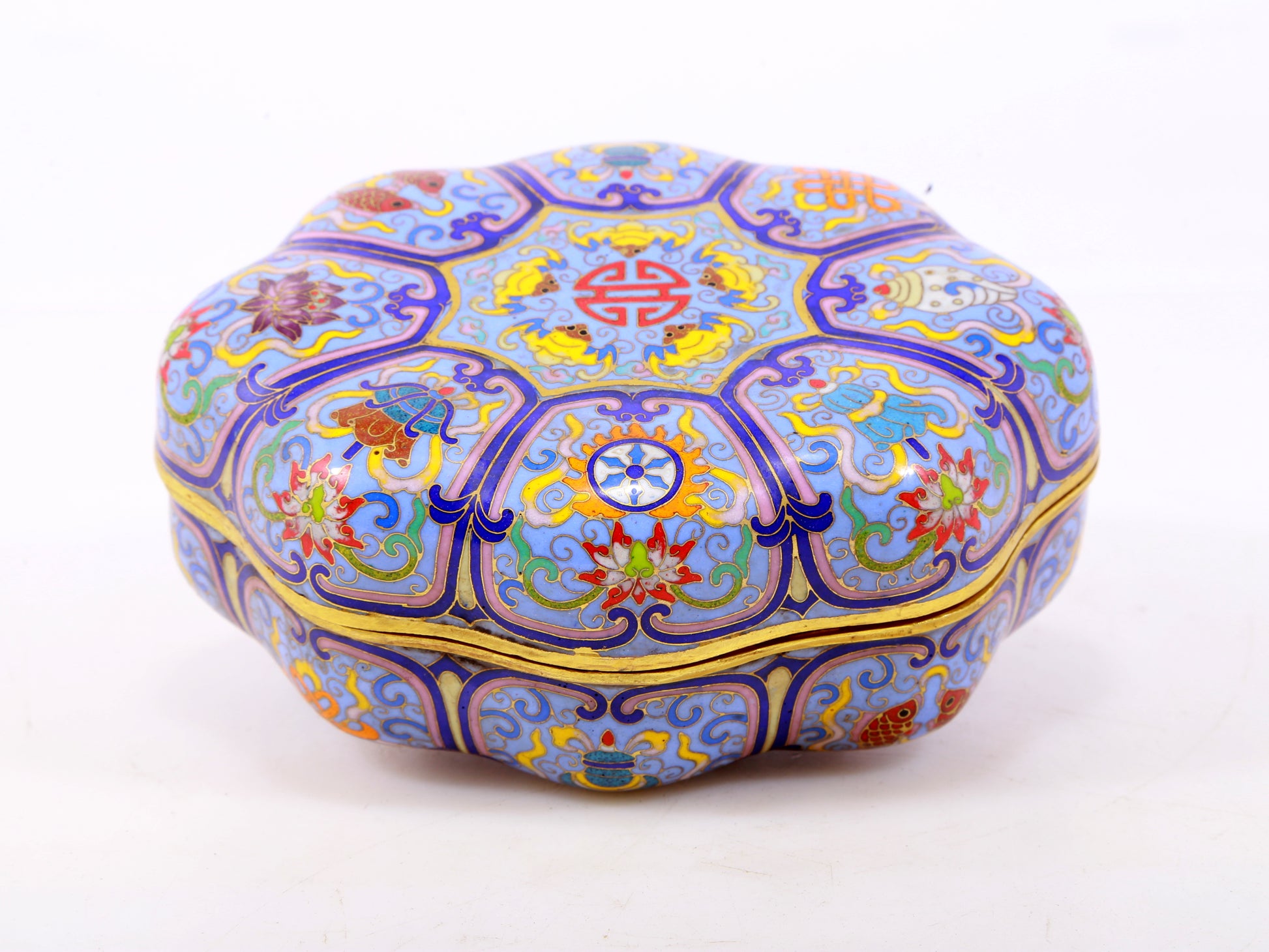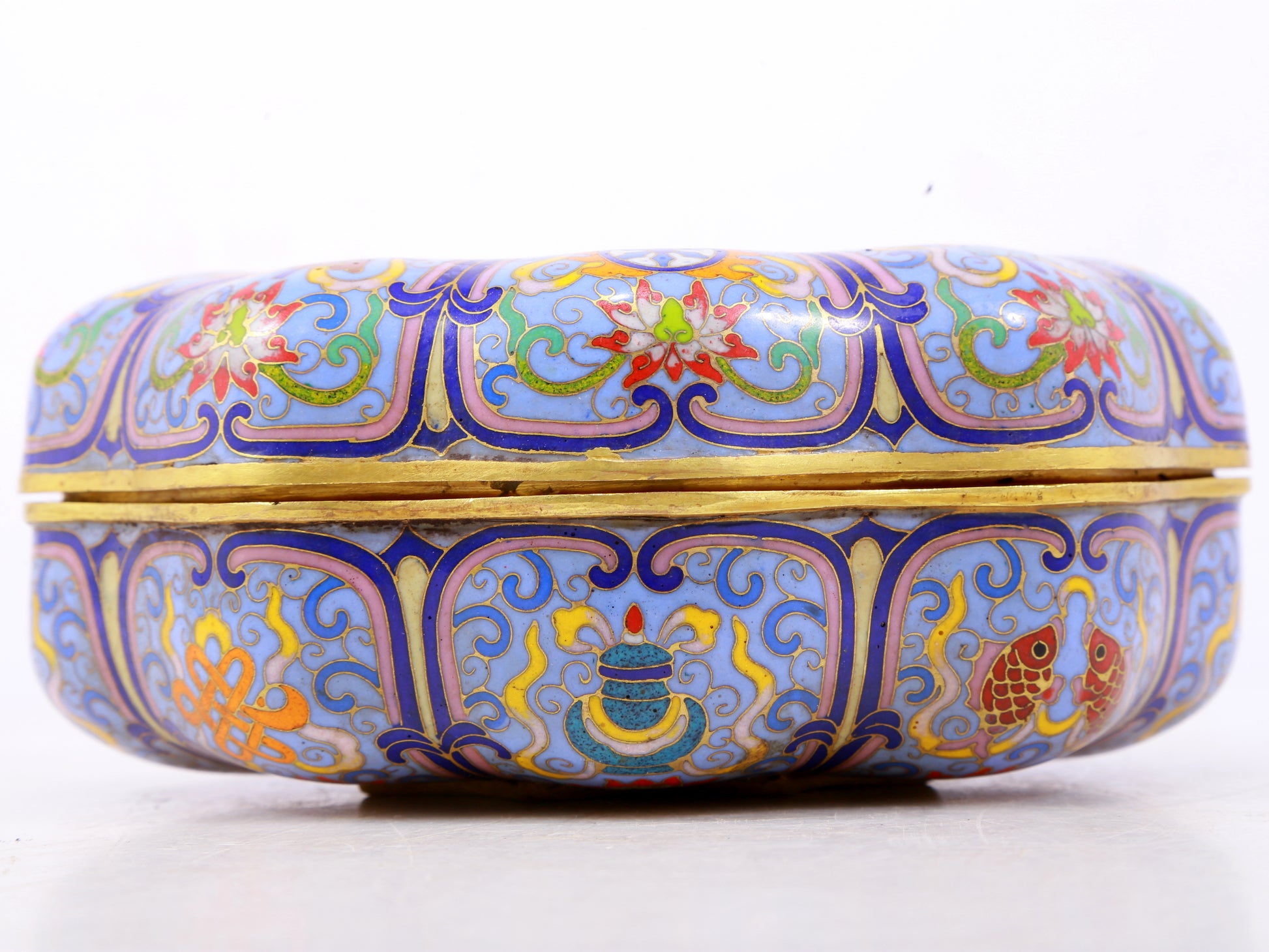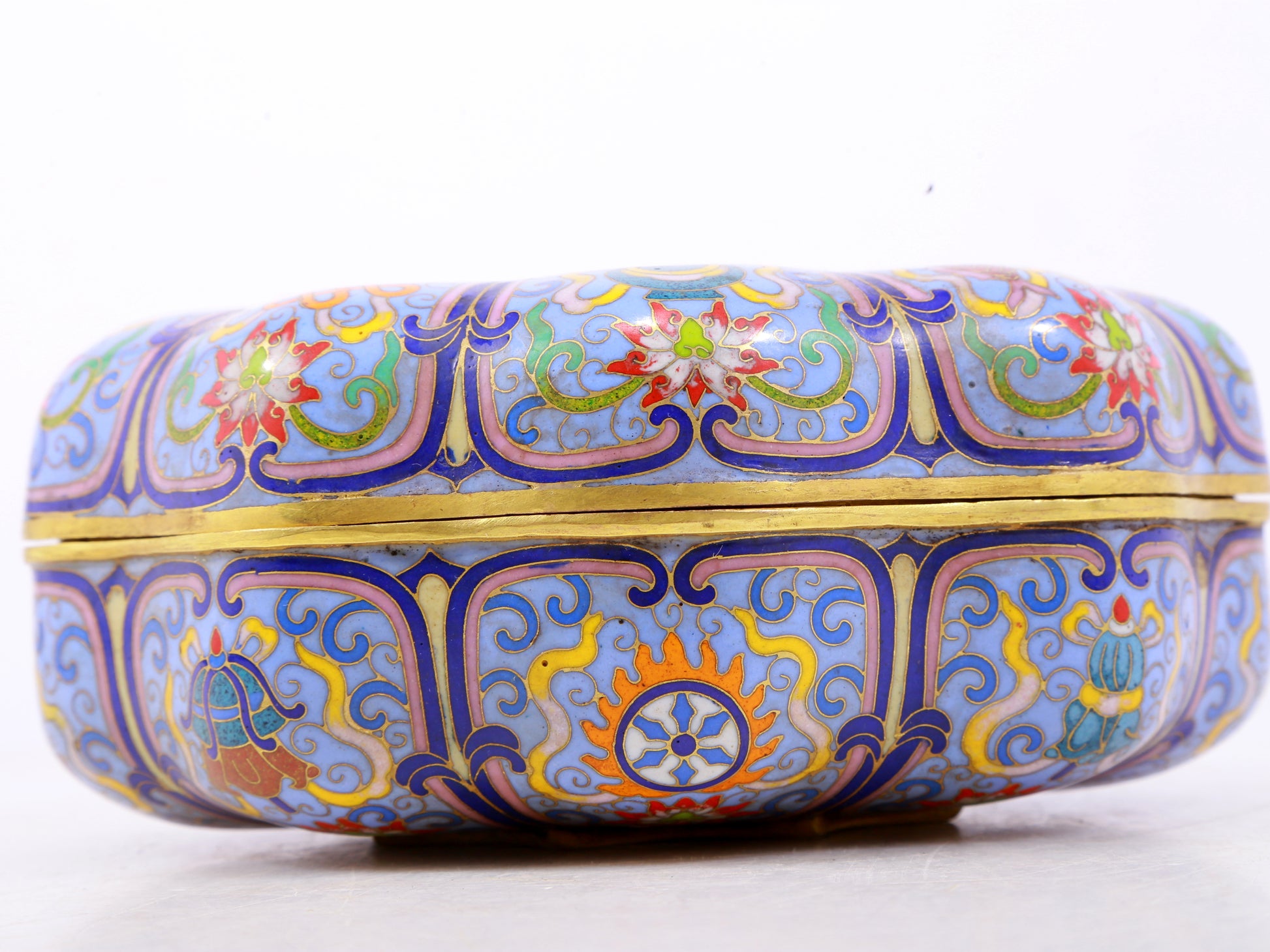 A perfect cloisonné 'Lotus and Eight dharma-vessel' pattern box