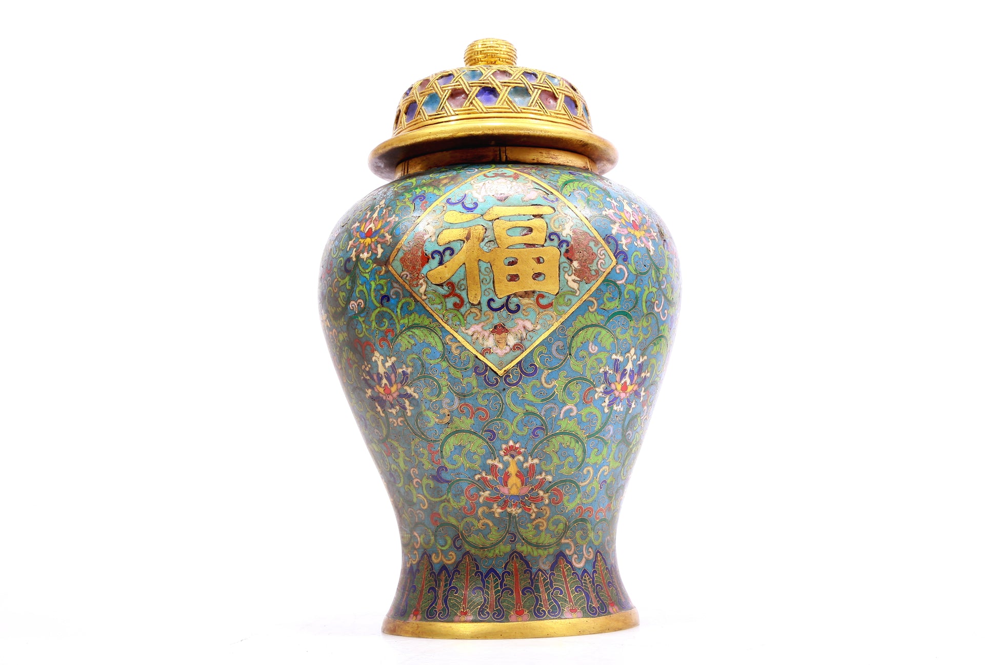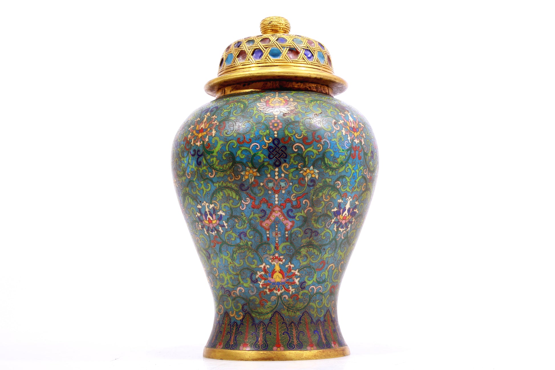 A Precious Cloisonne 'Scrolling Lotus' Vase And Cover