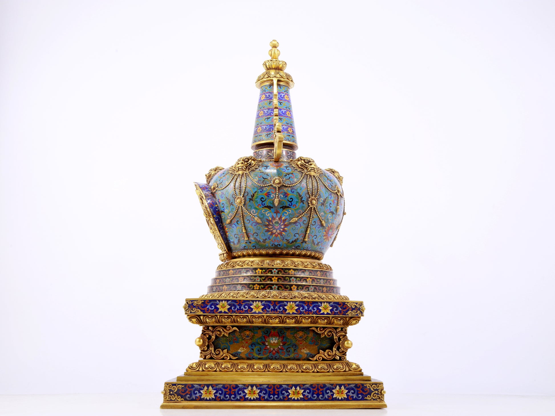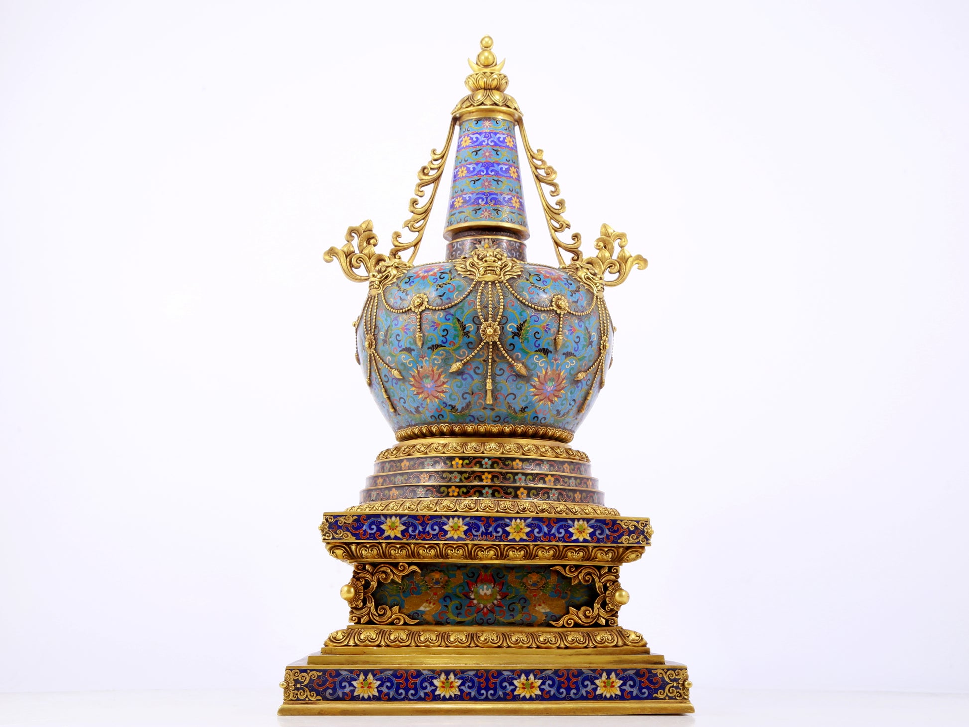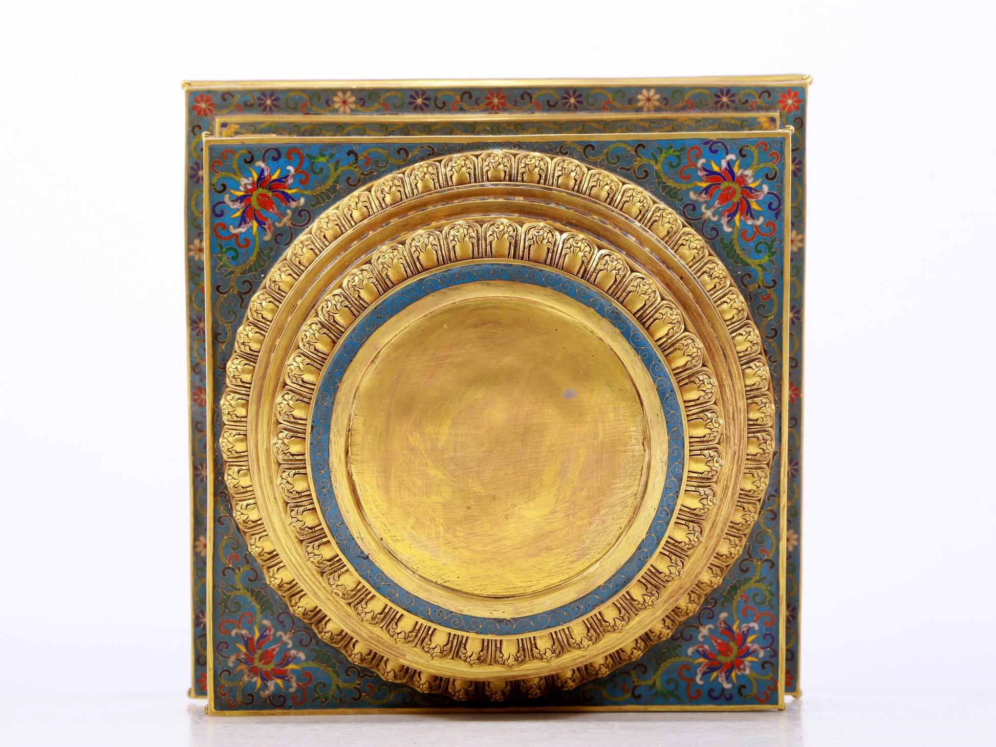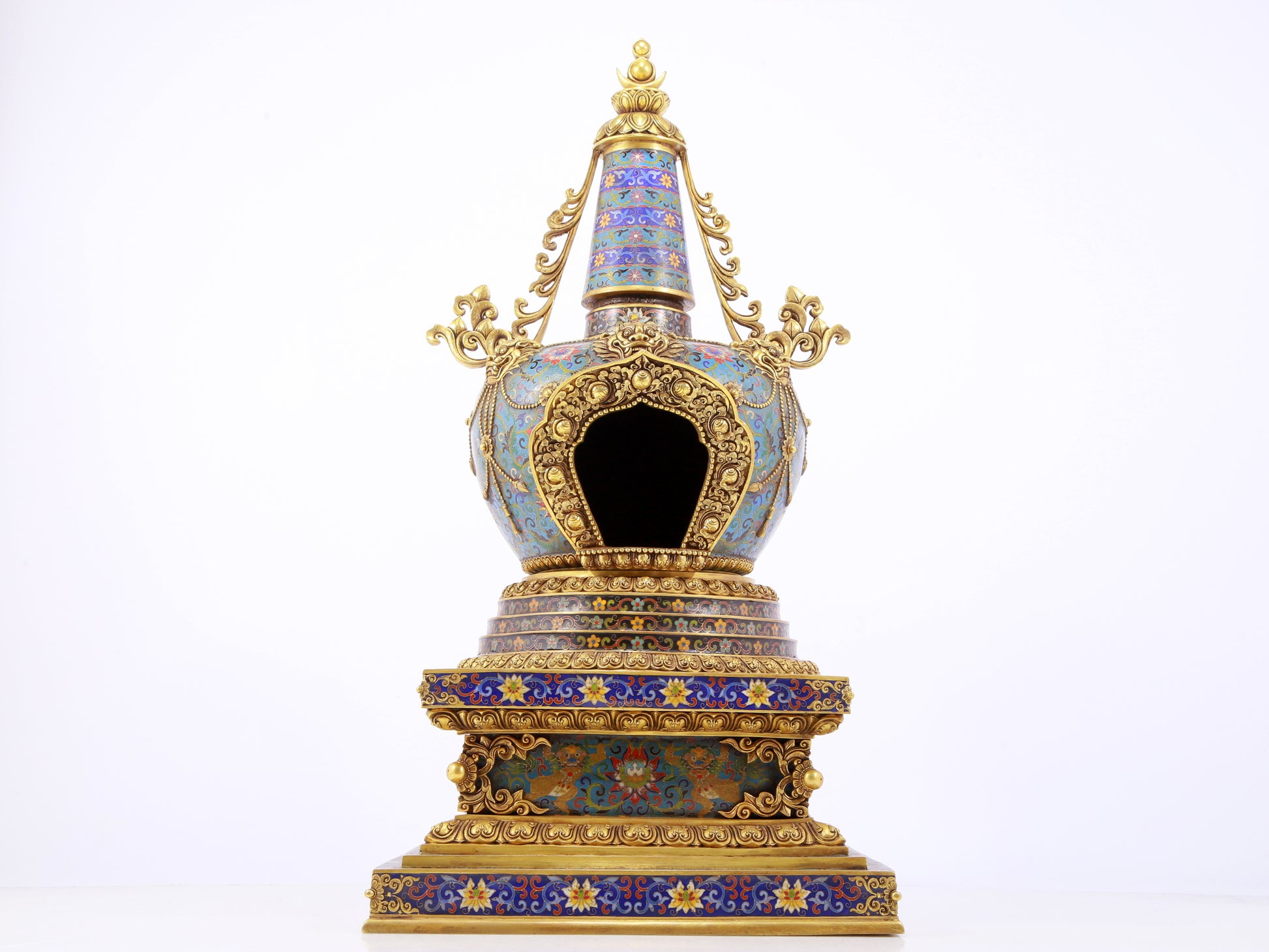 A rare cloisonné Buddhist niche with twining branches and lotus pattern