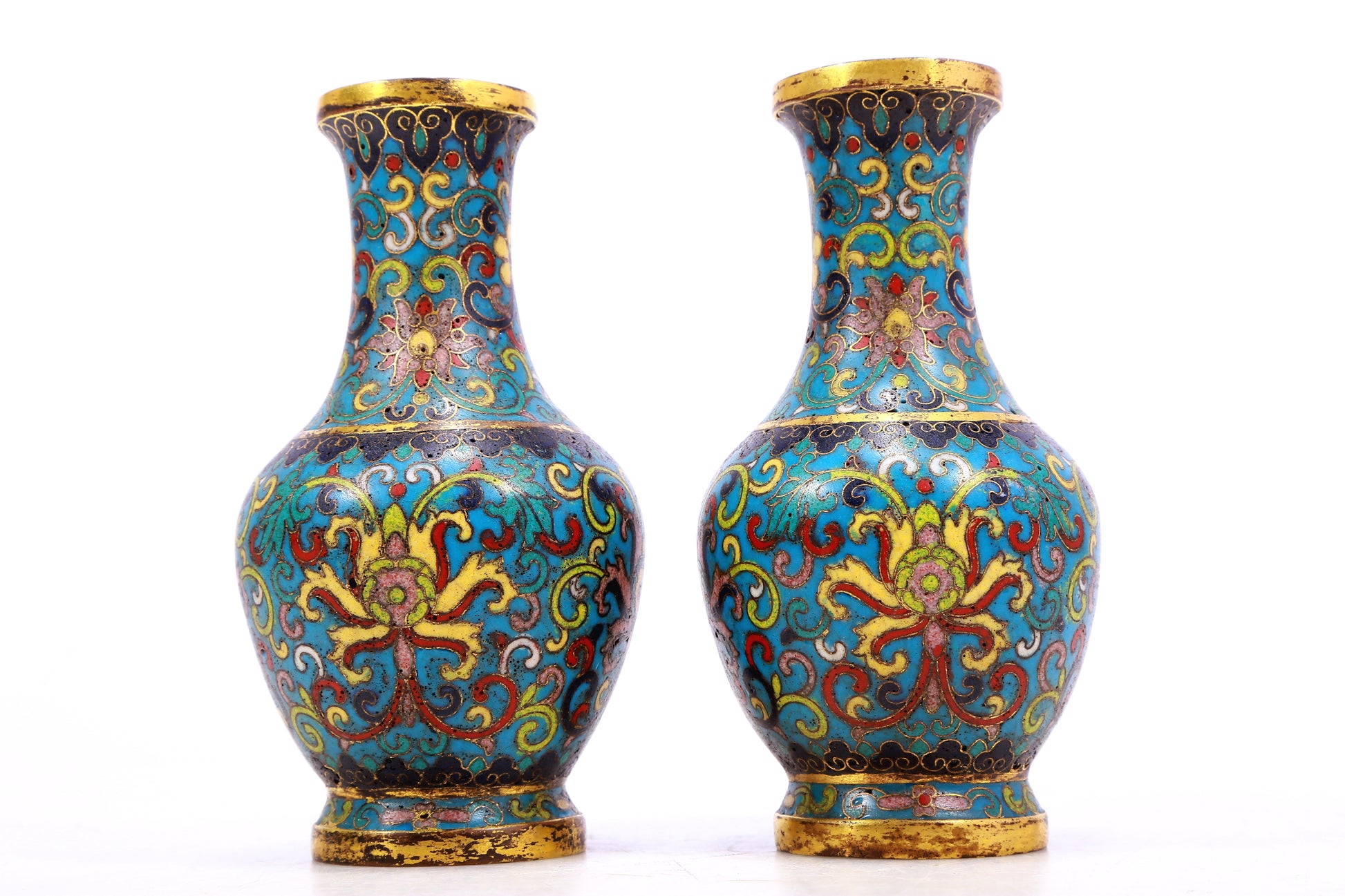 A Wonderful Pair Of Cloisonne 'Scrolling Lotus' Vases