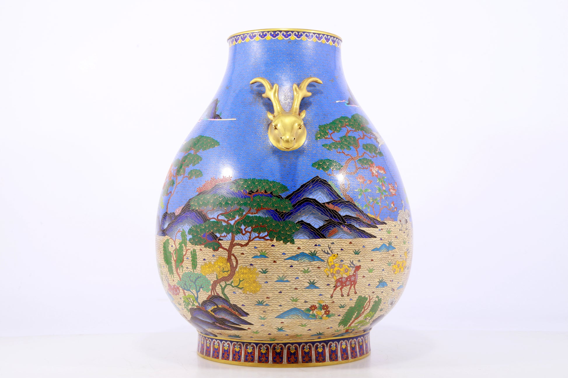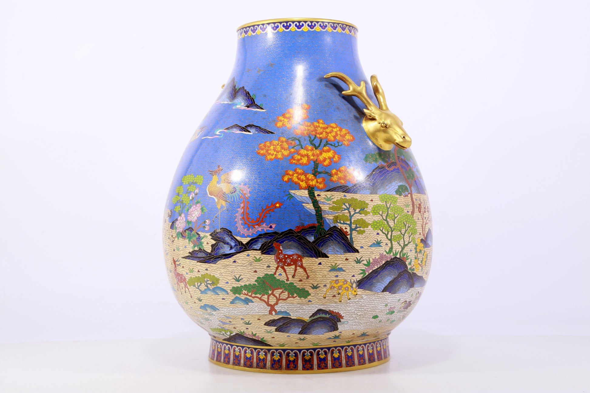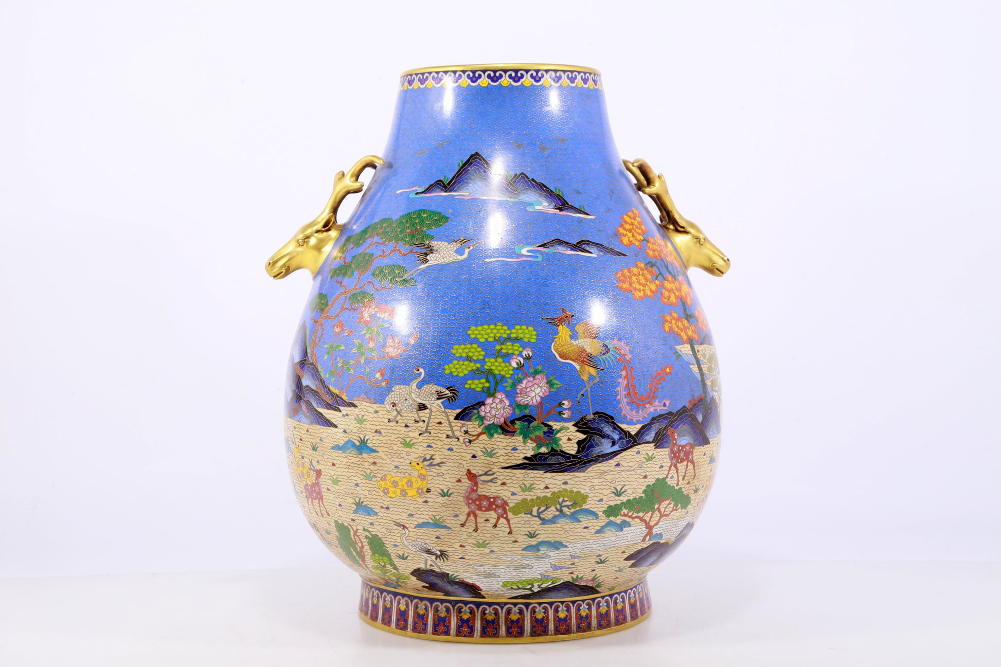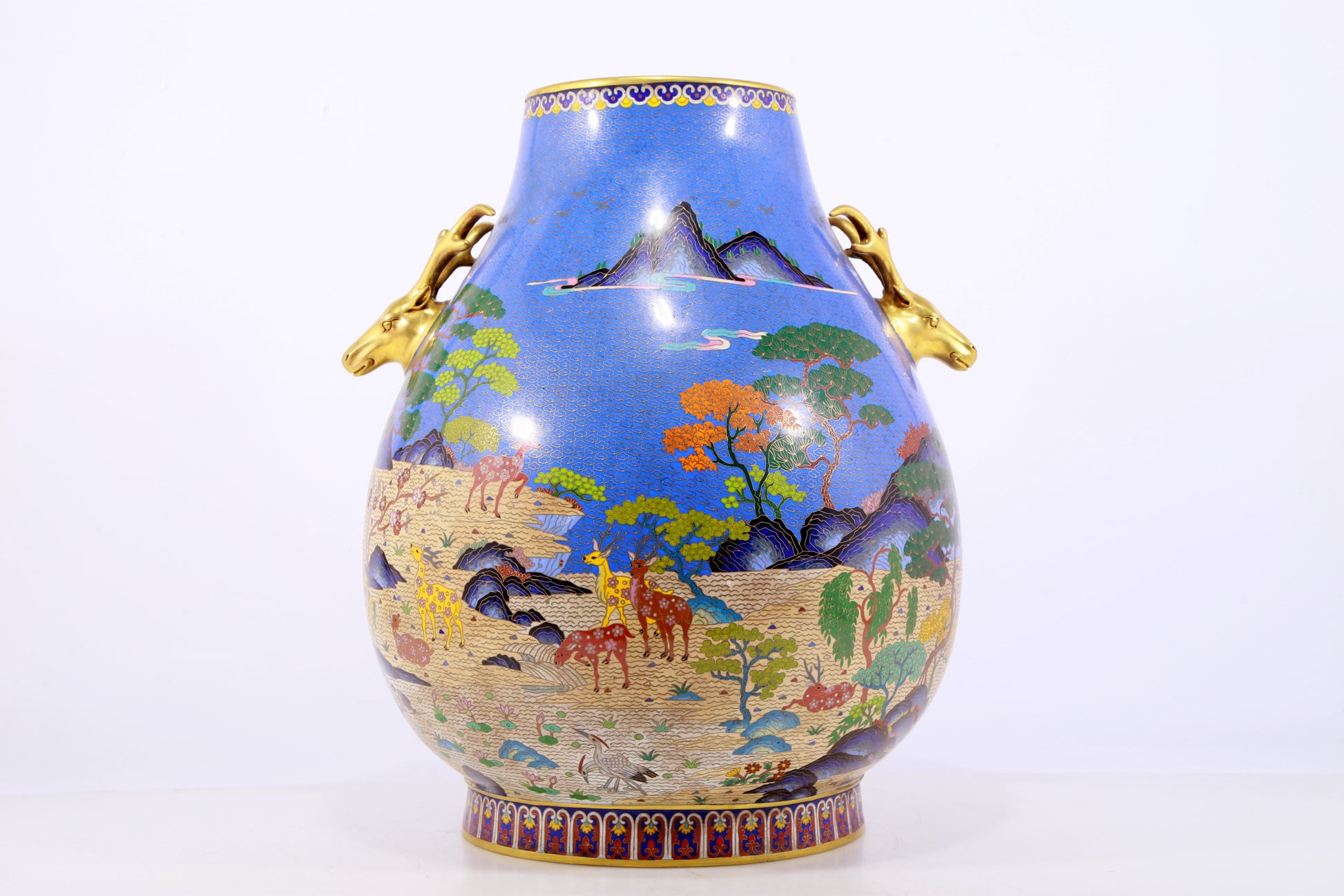 An exquisite cloisonne auspicious animal pattern deer ear bottle