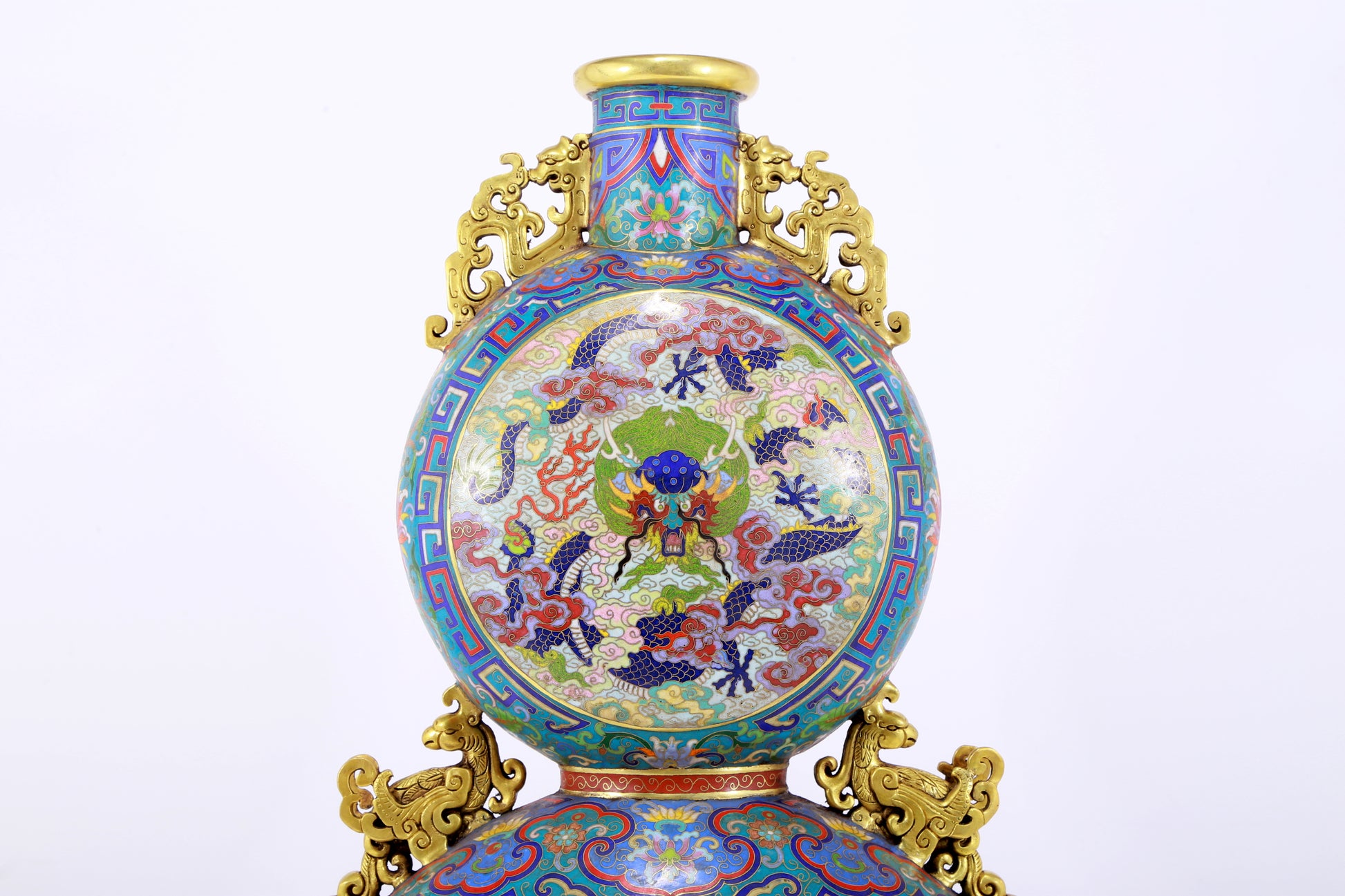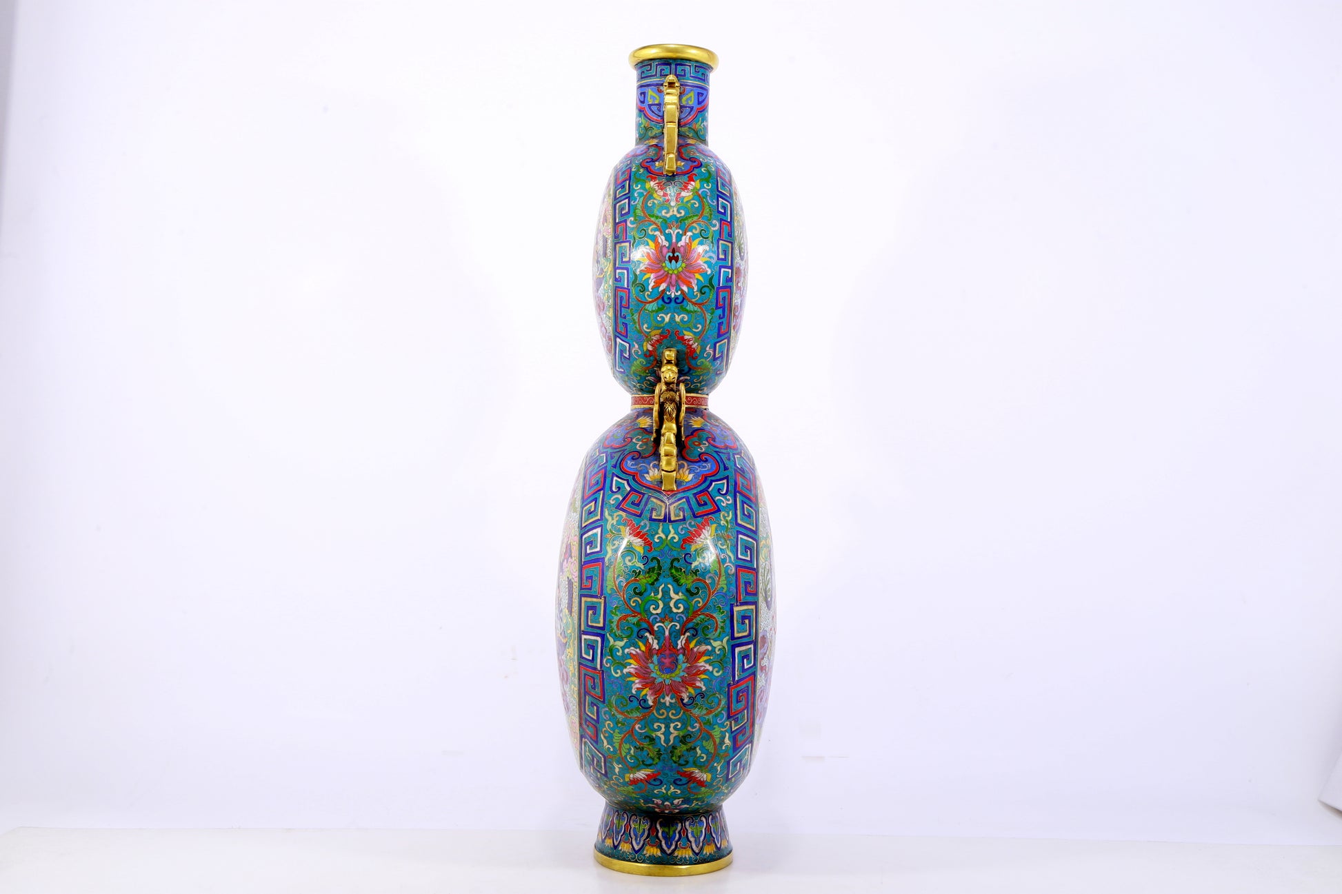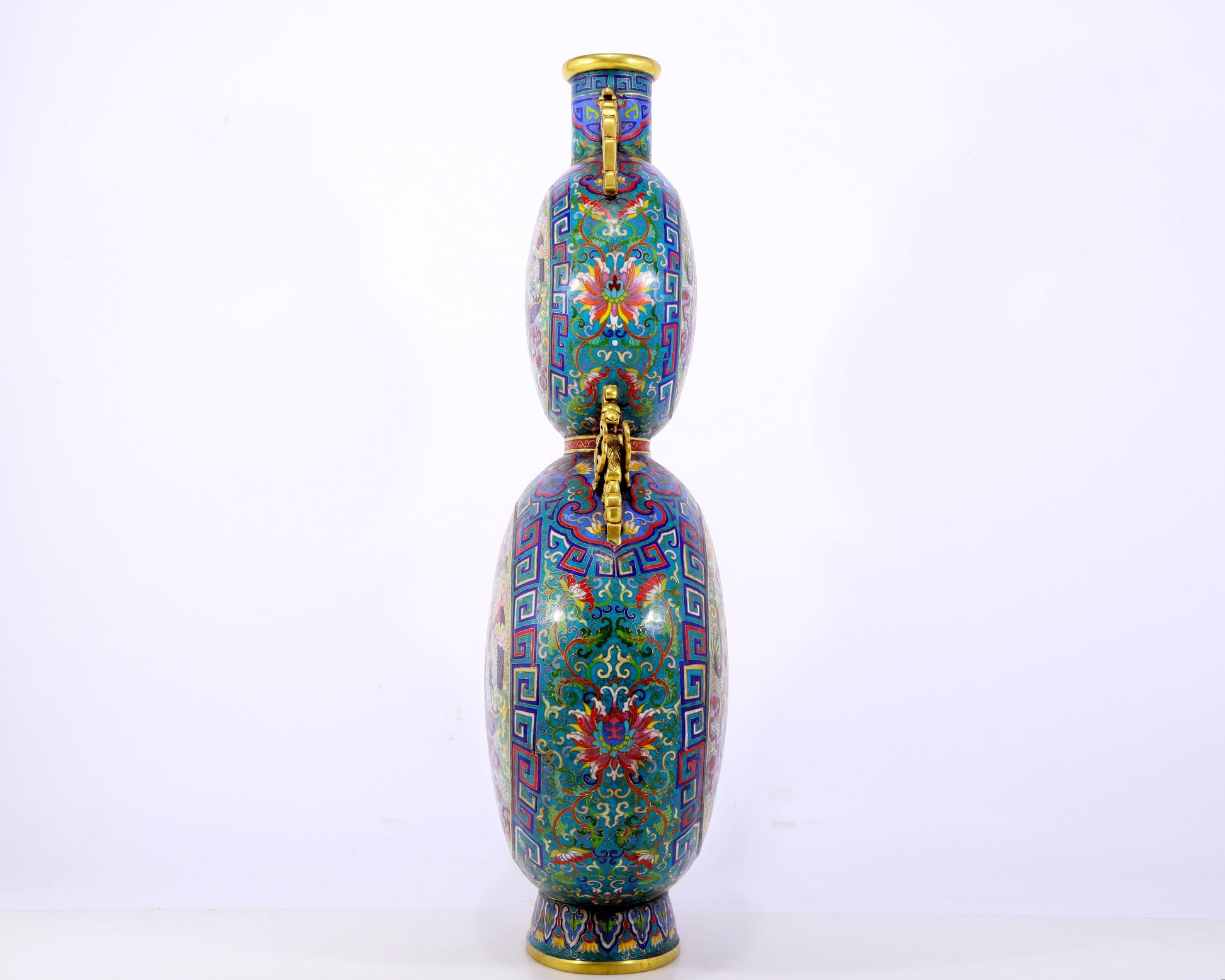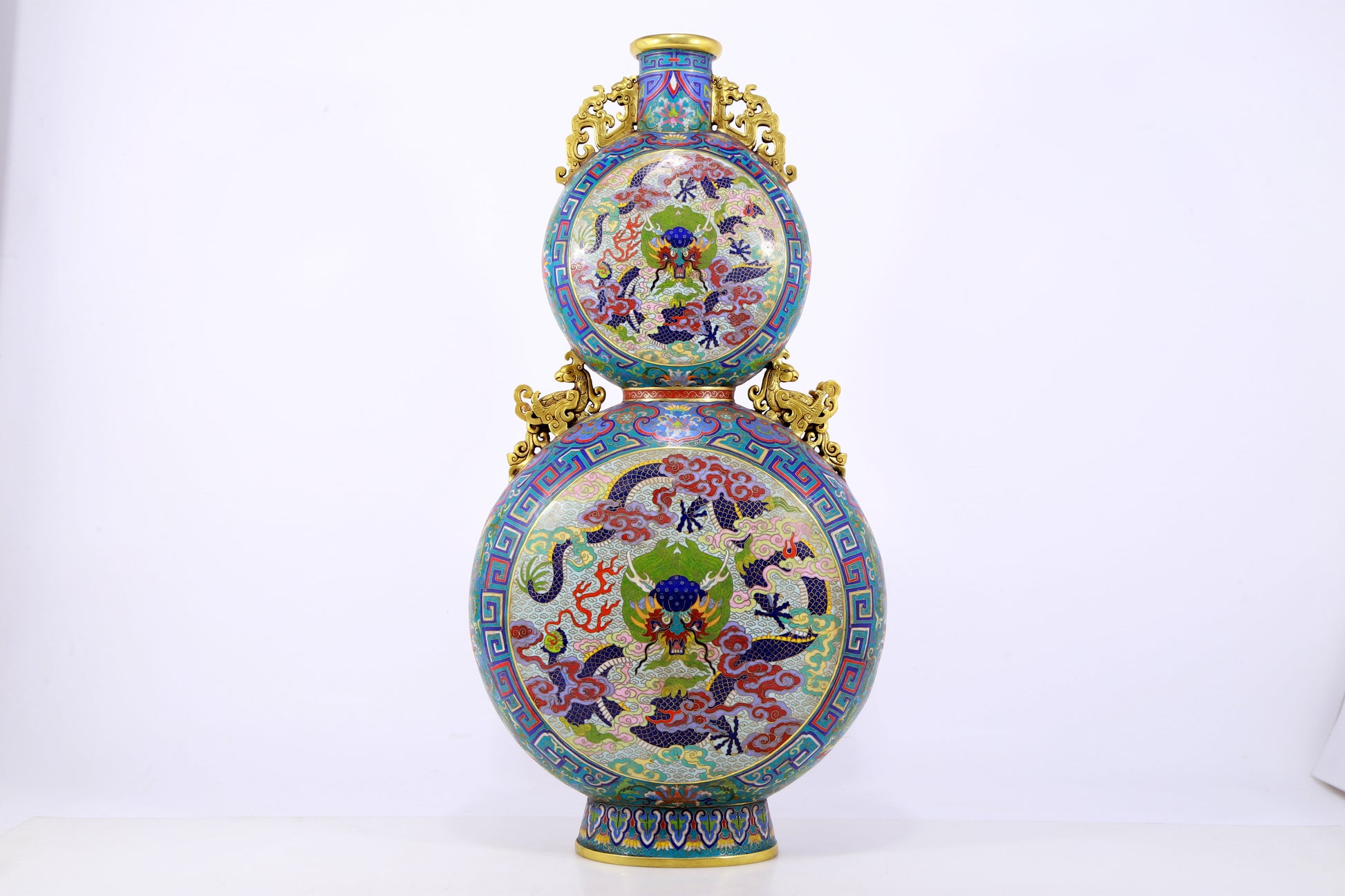 An exquisite cloisonne 'auspicious clouds and dragon' pattern gourd-shaped amphorae