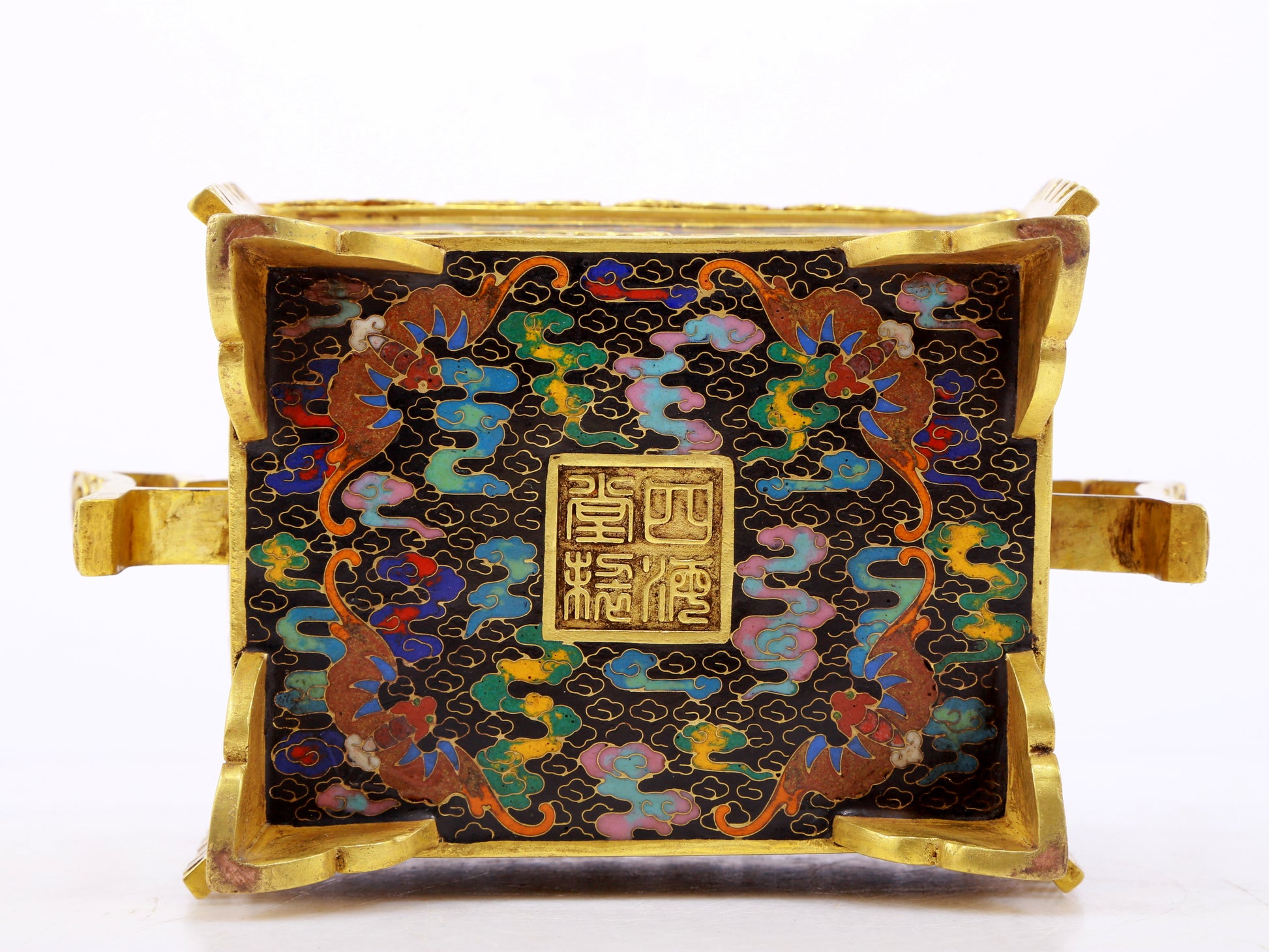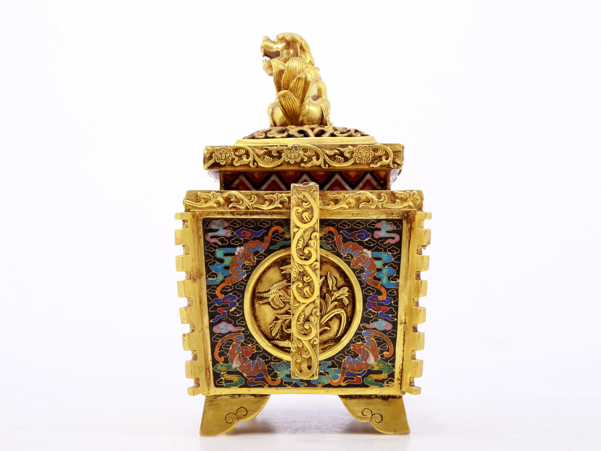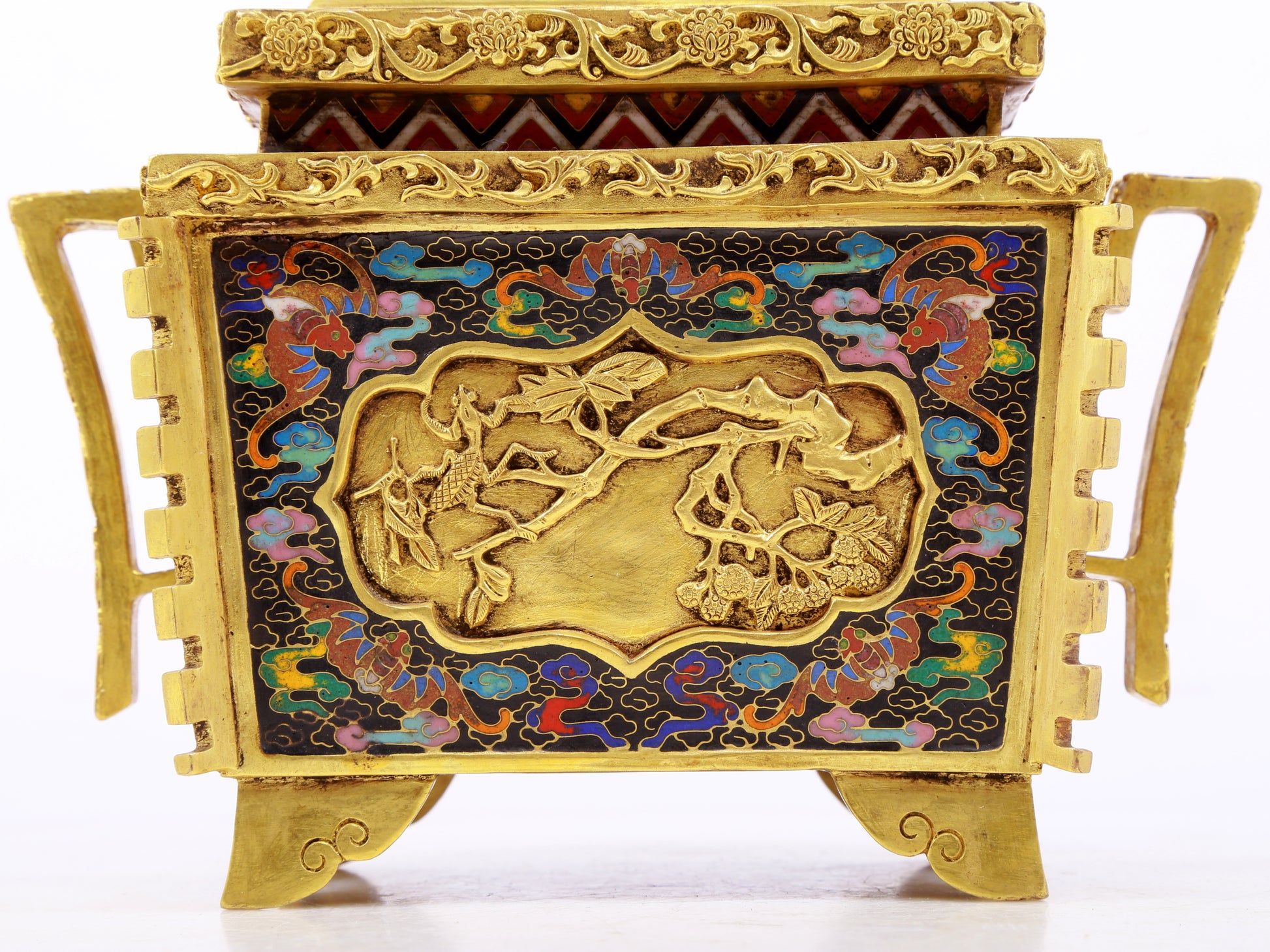 An exquisite cloisonné 'Clouds and Bats' pattern double-eared censer with lid