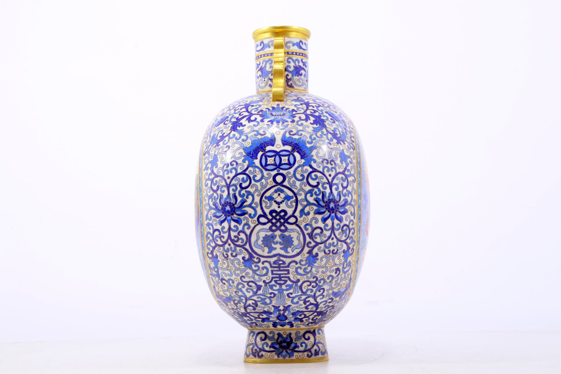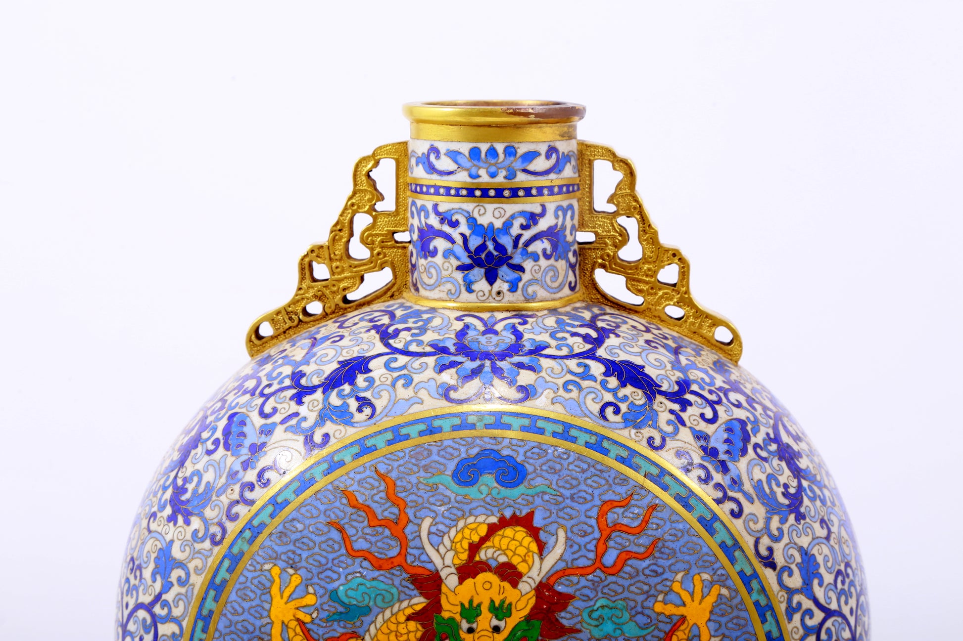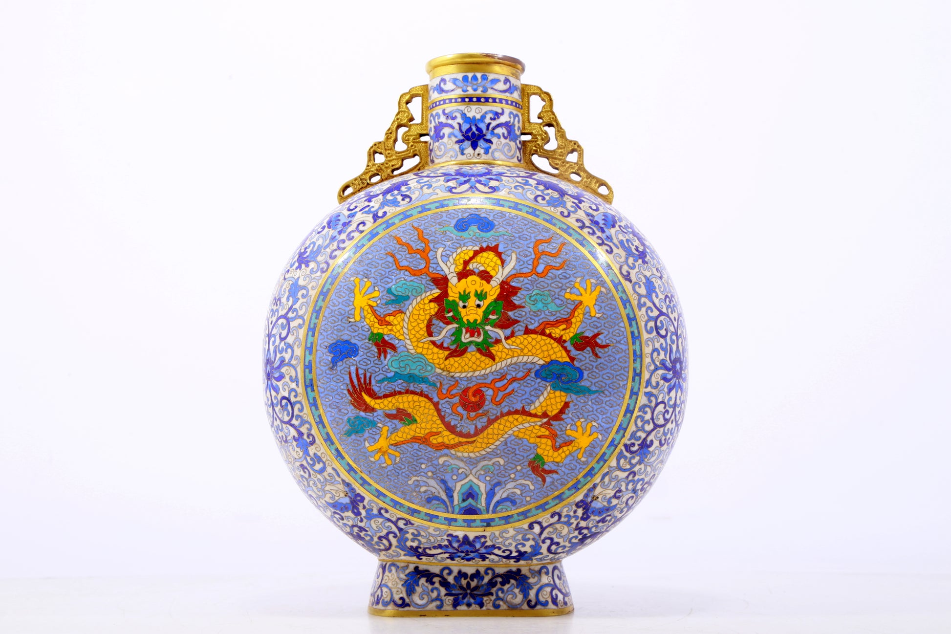 An exquisite cloisonne 'landscape and dragon' pattern amphorae