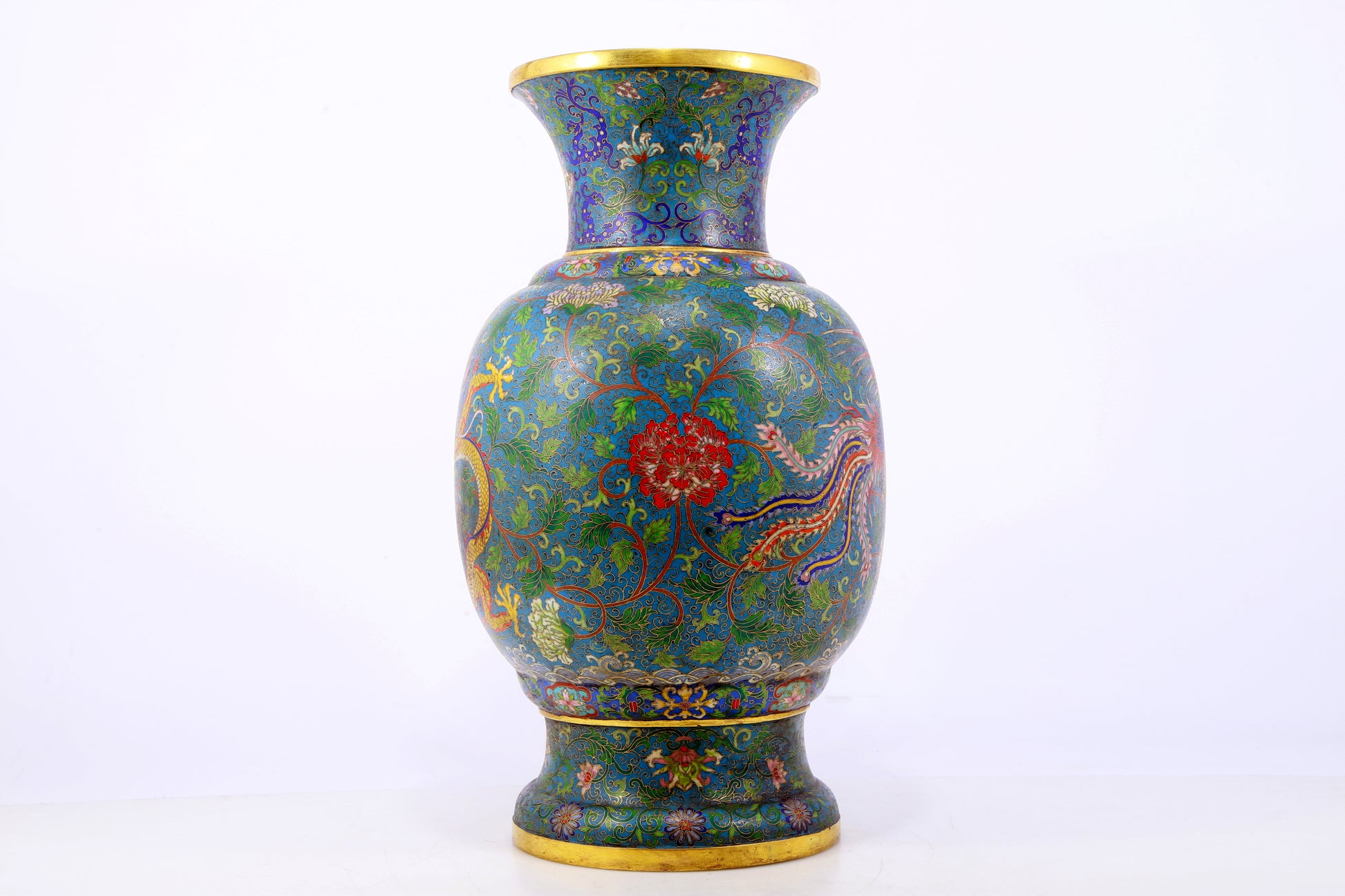 An exquisite cloisonné 'Lotus and dragon and phoenix pattern' vase