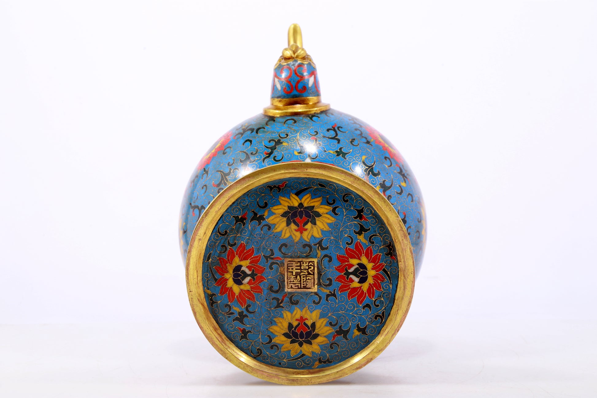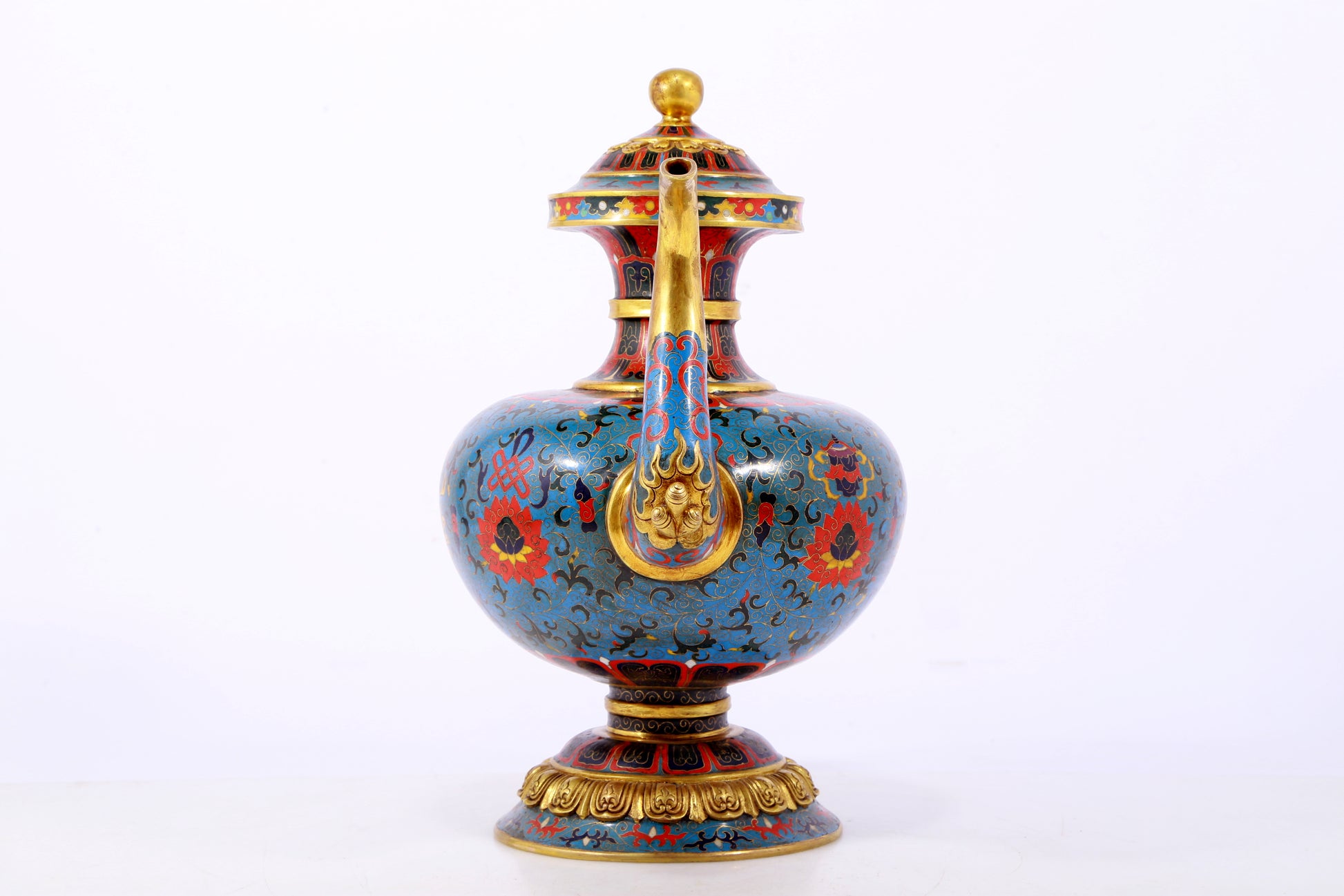 An exquisite cloisonné pot with lotus pattern
