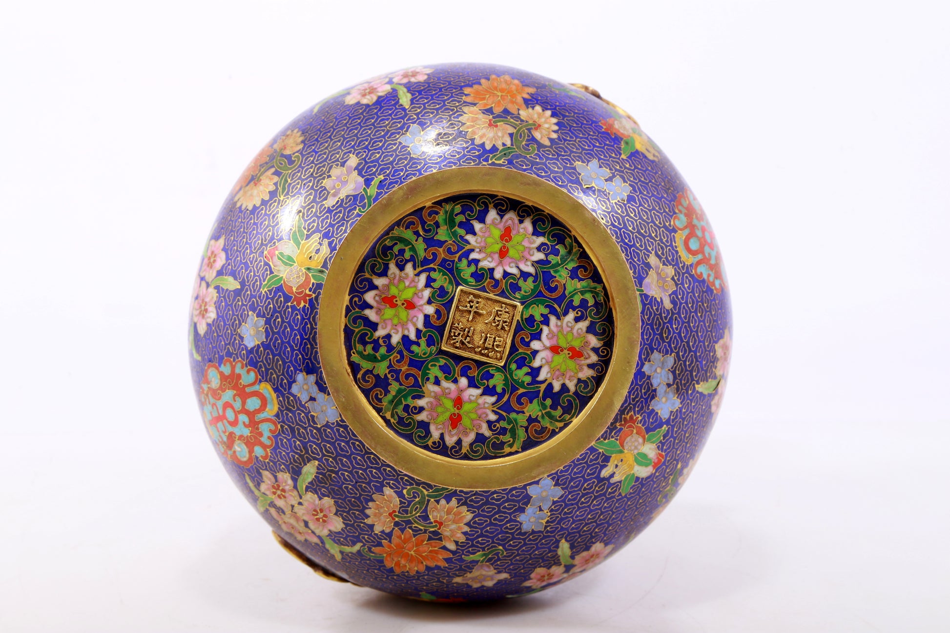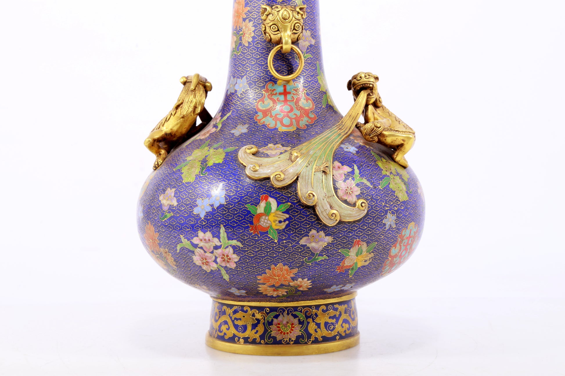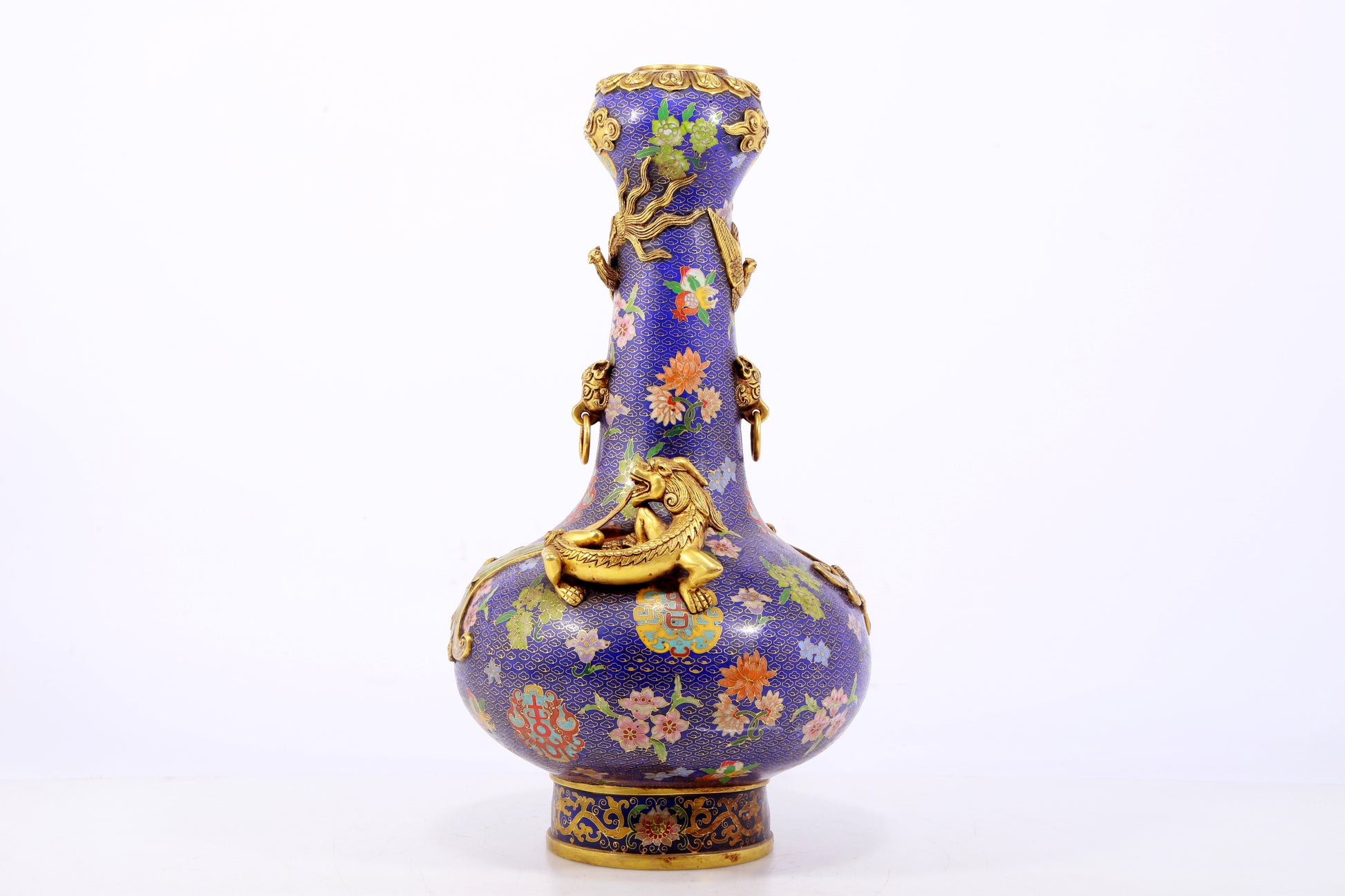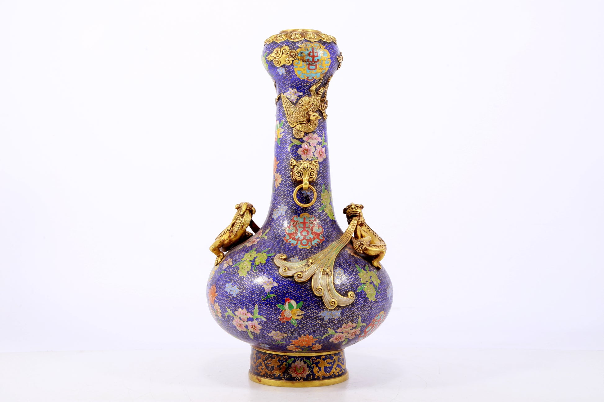 An exquisite cloisonné vase with 'flowers and auspicious animals' patterns